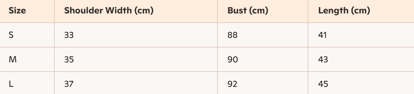 • Size: S, M, L