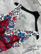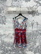 LV 25 Retro Floral Pattern Suspender Flower Dress Red Poliester