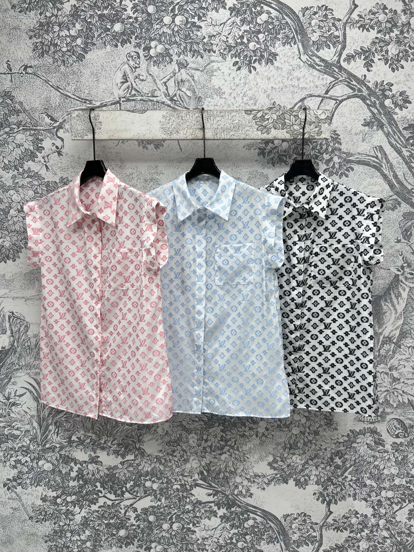 LV 25 Retro Hong Kong Small Flying Sleeve Shirt Pink Black Blue Viscose Rayon