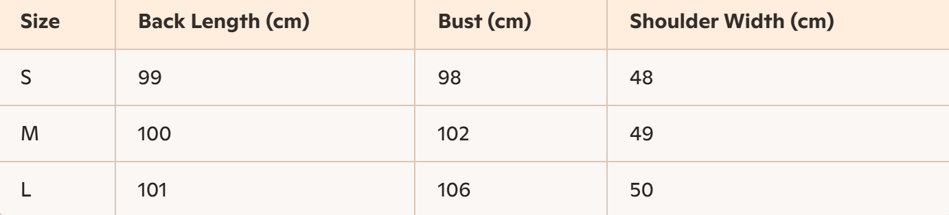 - Size: S, M, L