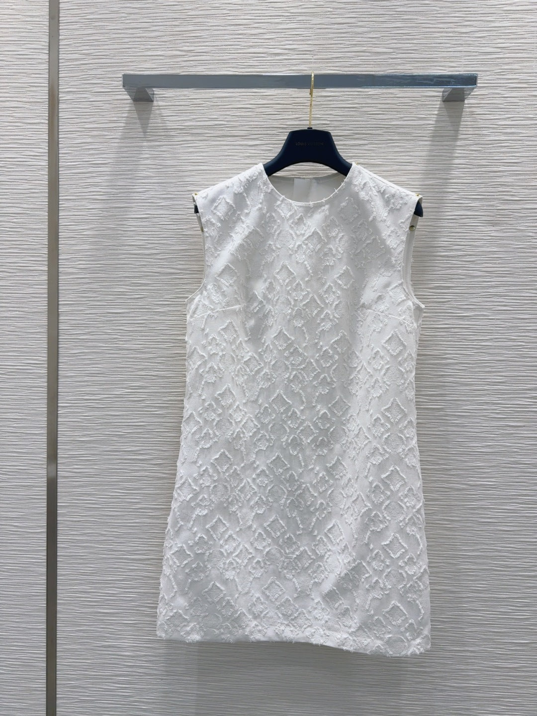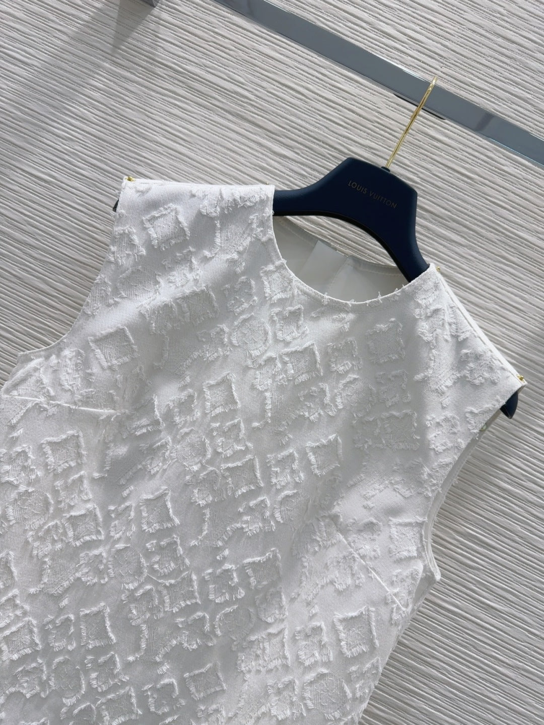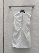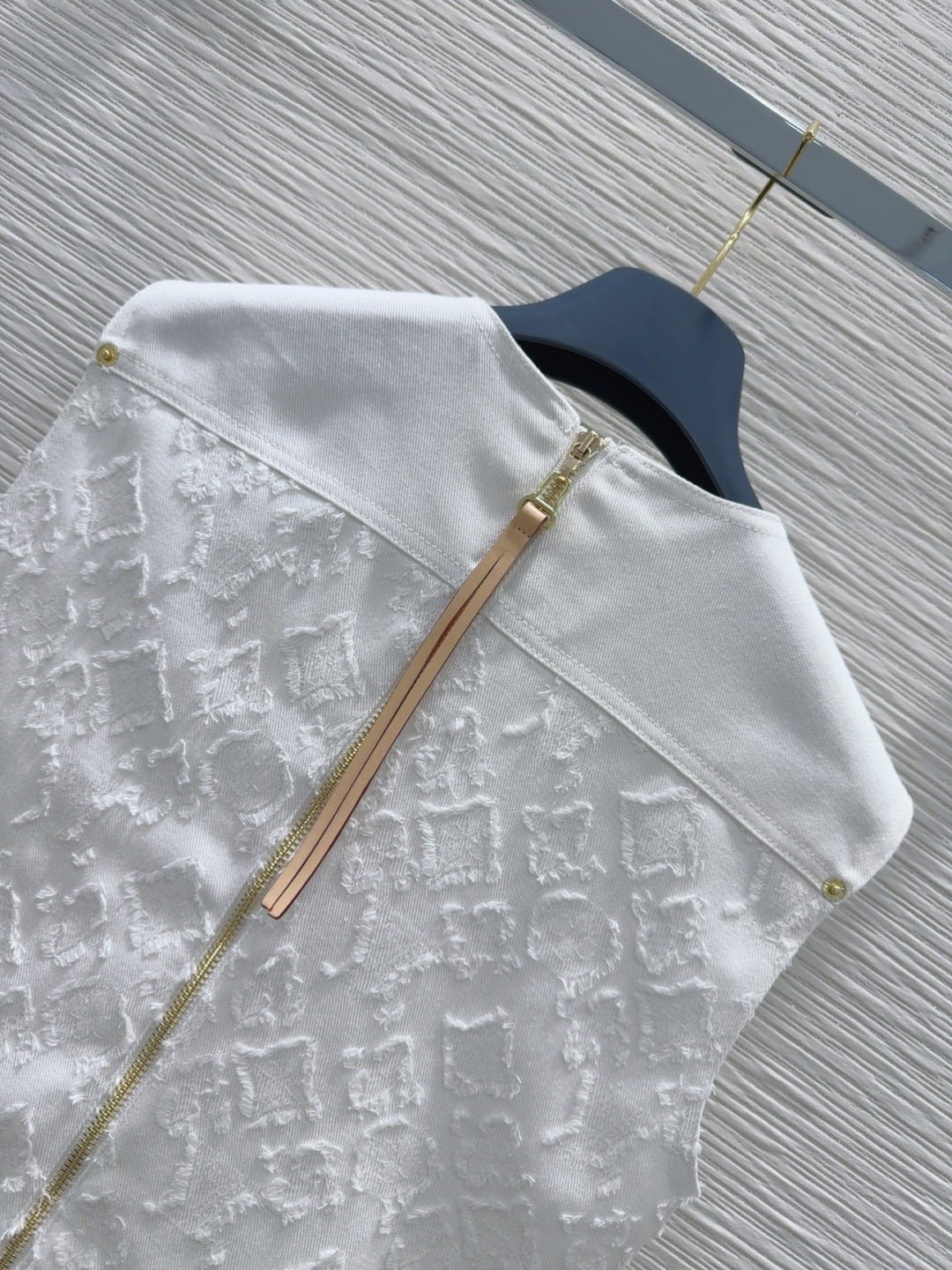 LV 25S Back Zipper Cute Vest Dress White Cotton