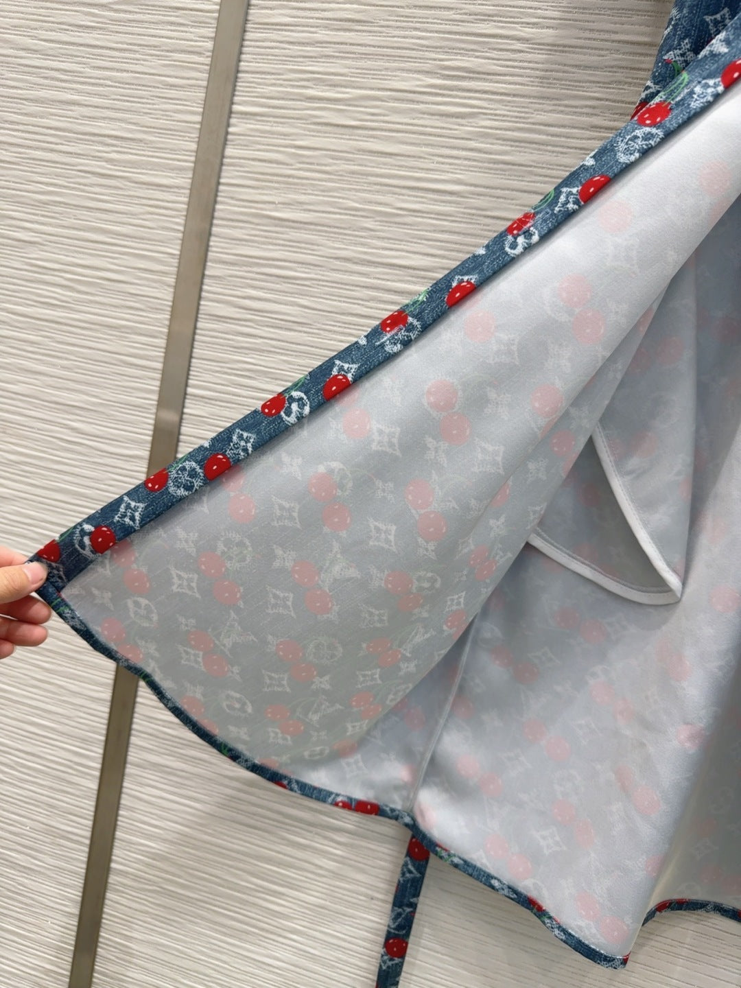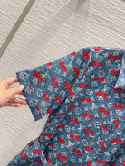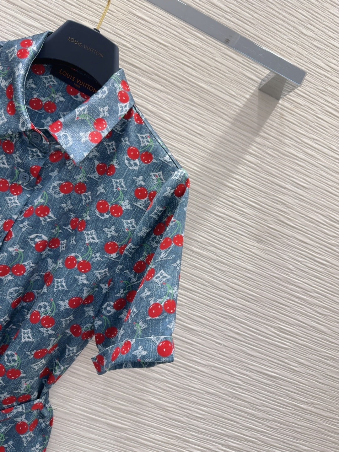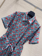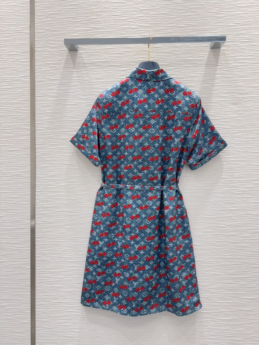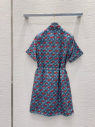 LV 25S Cherry Printed Dress Blue Red Poliester