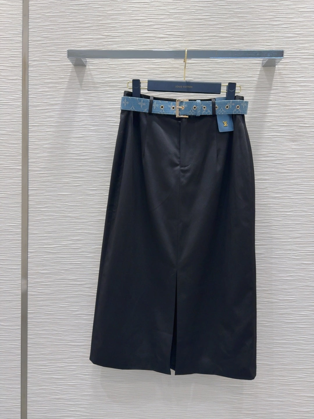 LV 25S Long Skirt Black Brown Cotton Polyester