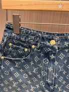 LV Flower Jacquard Denim Shorts Black Blue Cotton