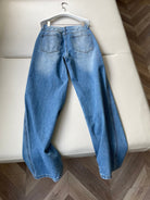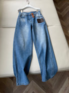LV Flower Leather Label Straight Jeans Blue Cotton