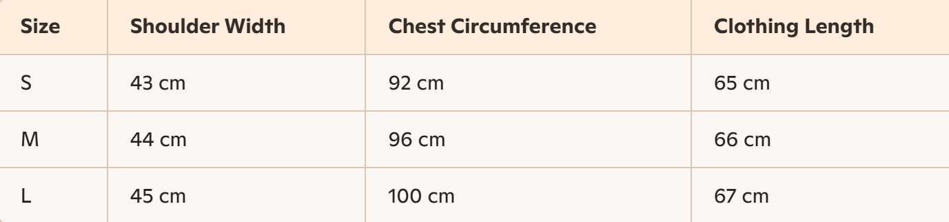 - Size: S, M, L
