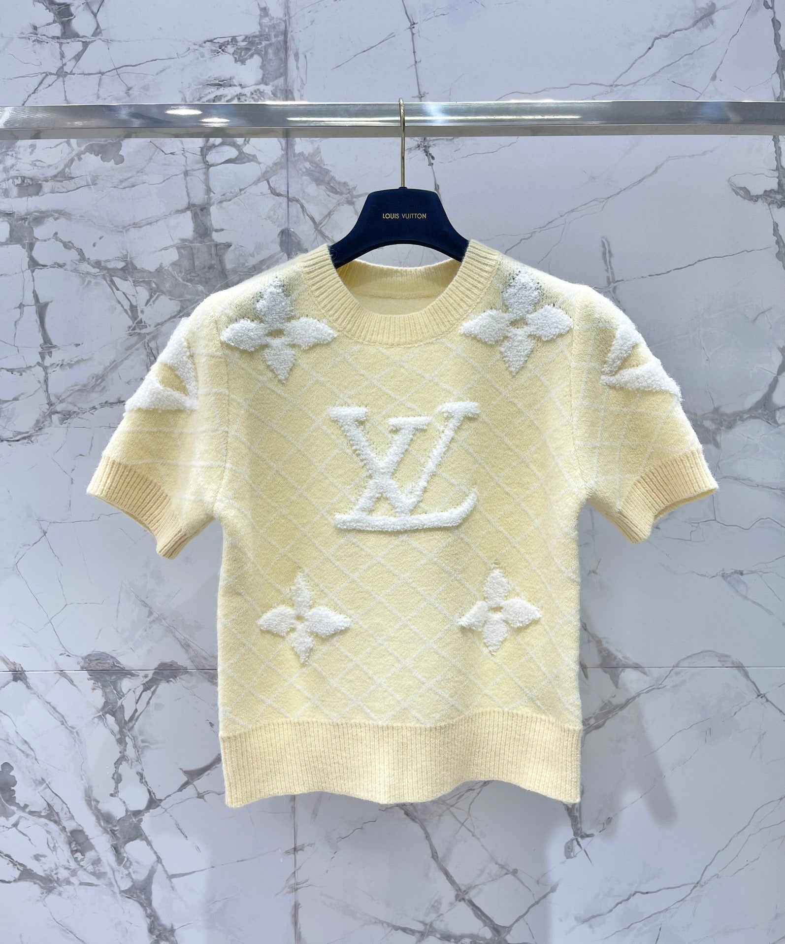 LV Flower T Shirt Light Yellow Polyamide Wool