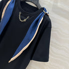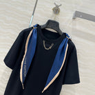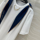LV High-Sense Silk Scarf T-shirt Black White Cotton