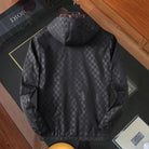 LV HOODED JACKET IN BLACK DAMIER AND BROWN TRIM 239036