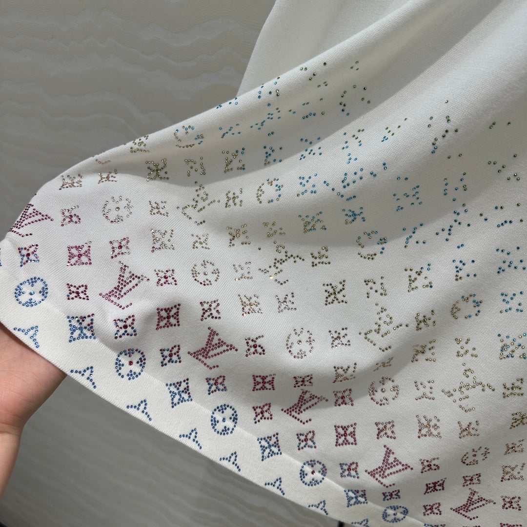 LV Short-Sleeved Knit Sweater Shirt White Black Cotton