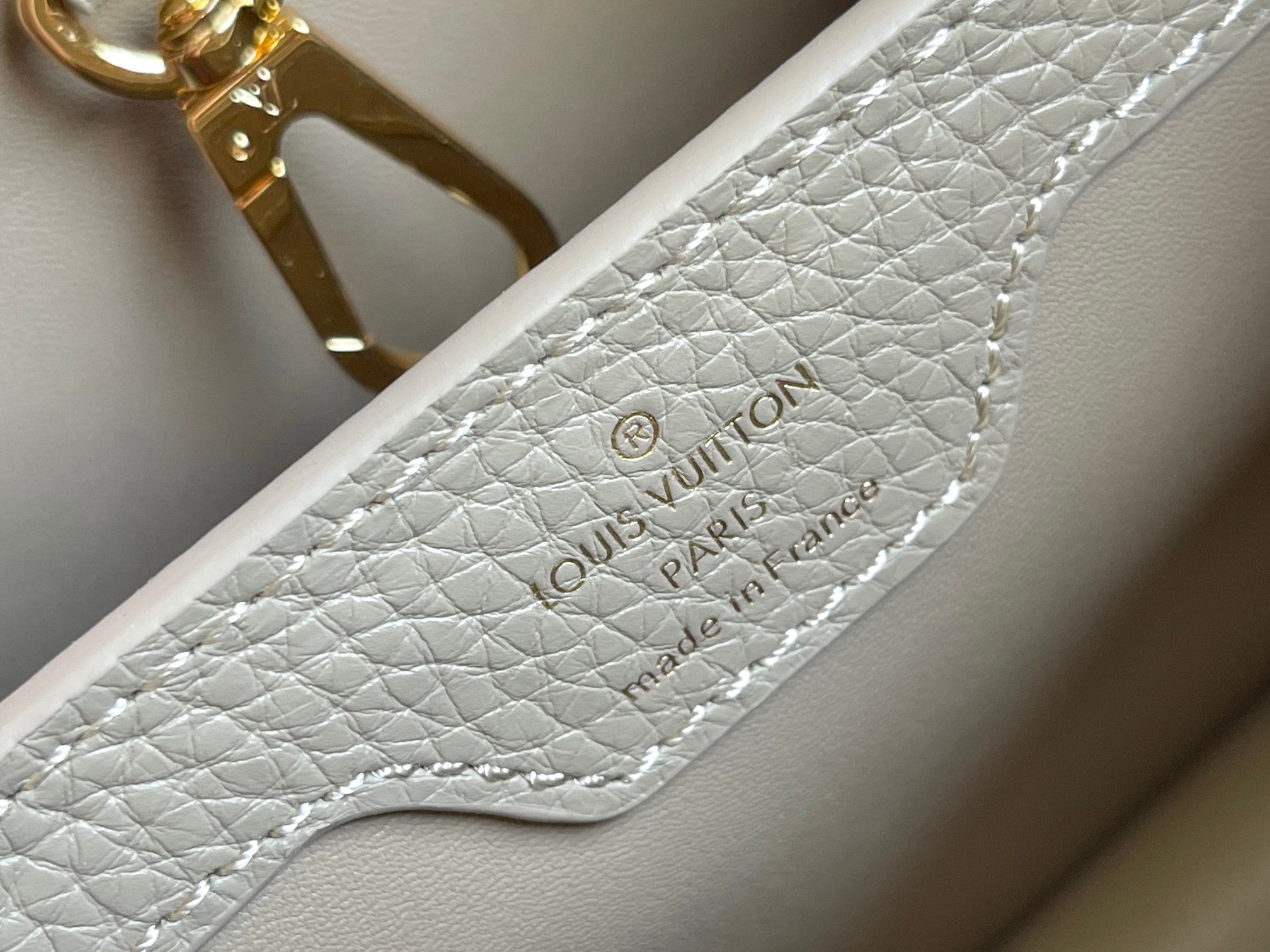 CAPUCINES BB 27 DARK BEIGE TAURILLON GOLD HARDWARE