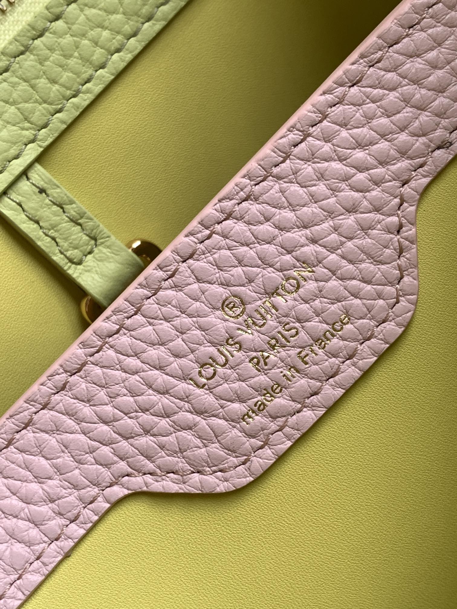 CAPUCINES BB 27 IN PEAR GREEN TAURILLON GOLD HARDWARE