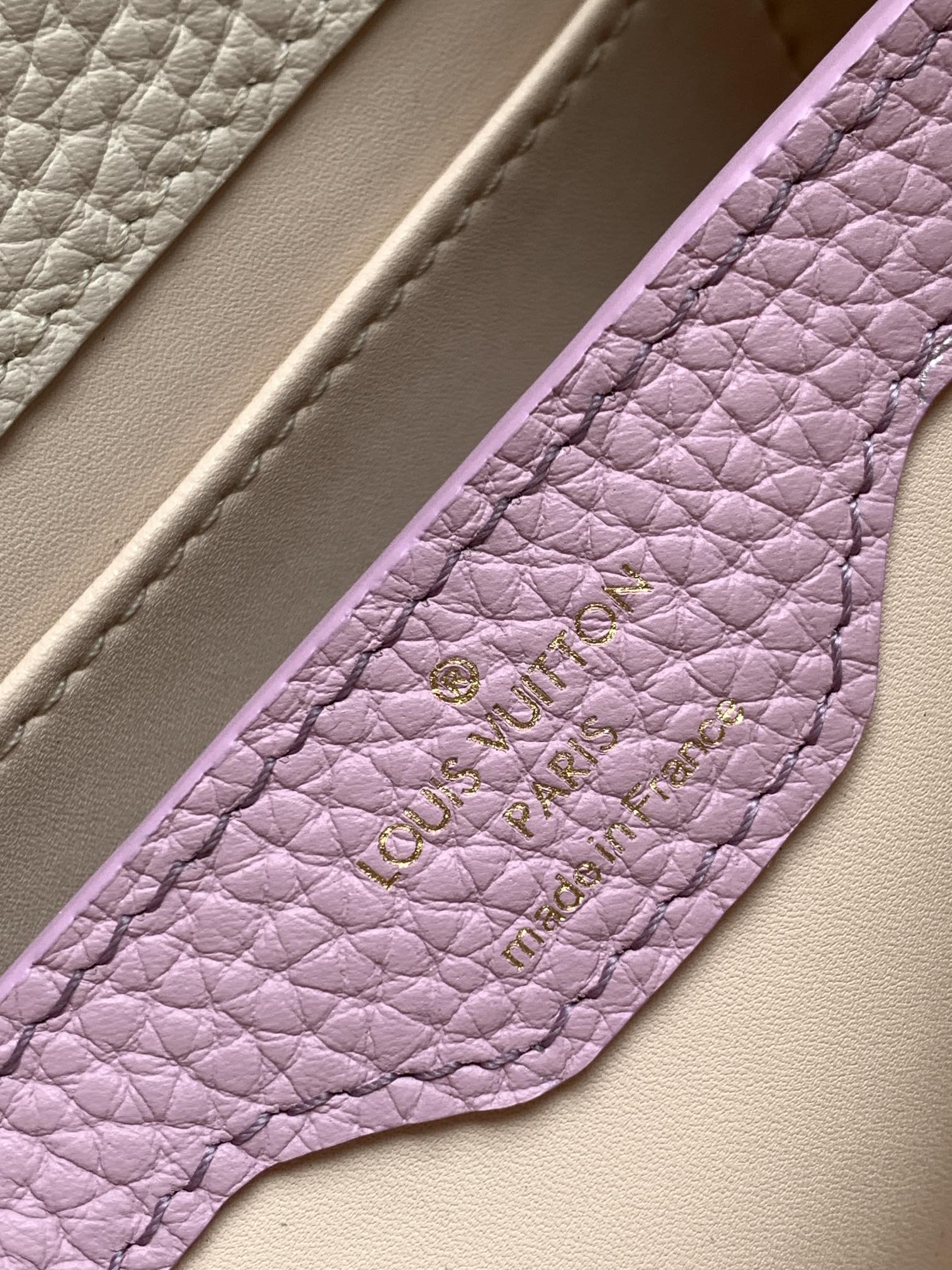 CAPUCINES MINI 21 IN PEARL WHITE TAURILLON GOLD HARDWARE