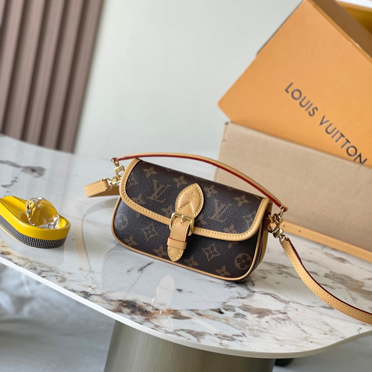 NANO DIANE 19 IN BROWN MONOGRAM CANVAS AND LEATHER TRIM