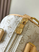SPEEDY BANDOULIÈRE 20 IN WHITE MONOGRAM JACQUARD AND BEIGE CALFSKIN TRIM