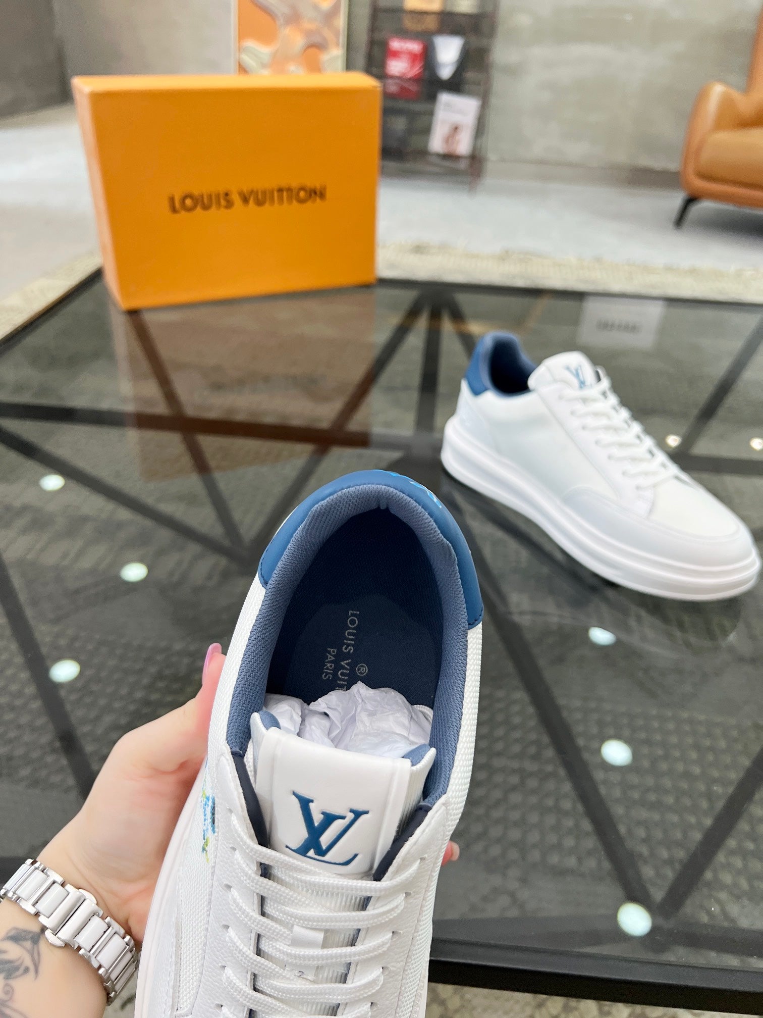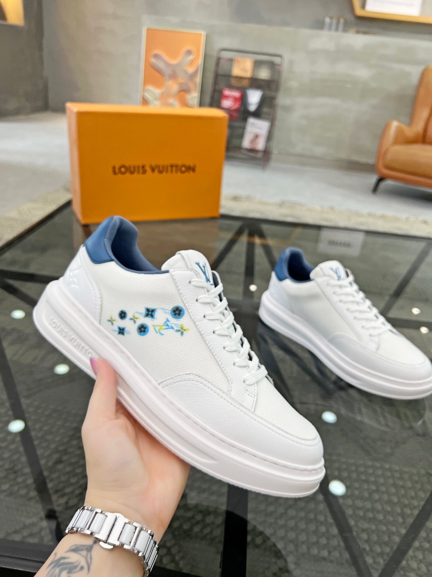 • Color: White mix Denim Blue