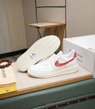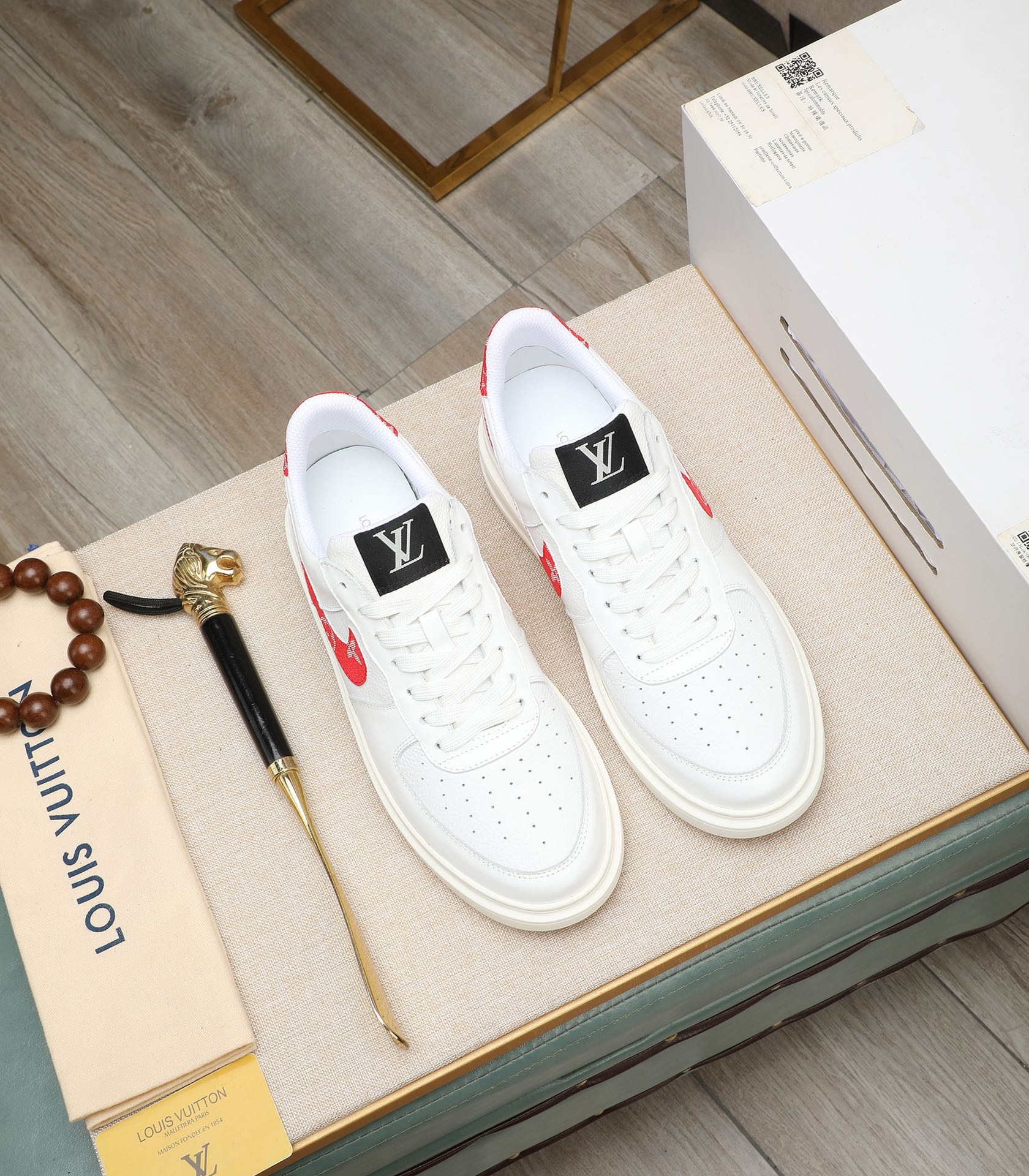 LV AIR FORCE 1 GLOSSY WHITE CALFSKIN WITH RED MONOGRAM LOGO