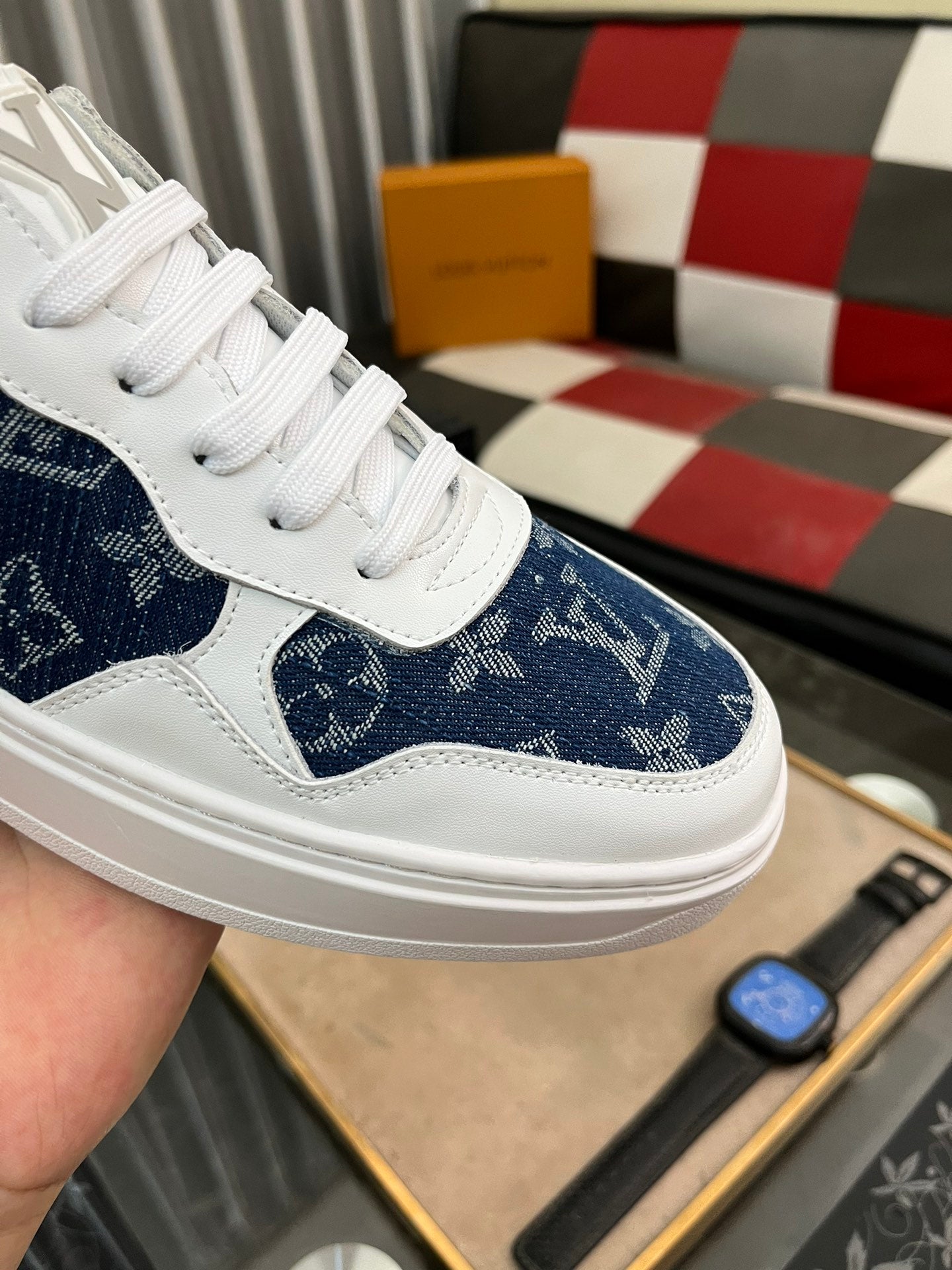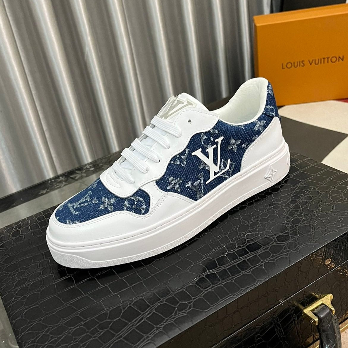 LV CLASSIC TRAINERS NAVY BLUE DENIM MIX WHITE CALFSKIN