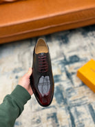 LV LACE-UP IN WINE RED GLOSSY CALFSKIN