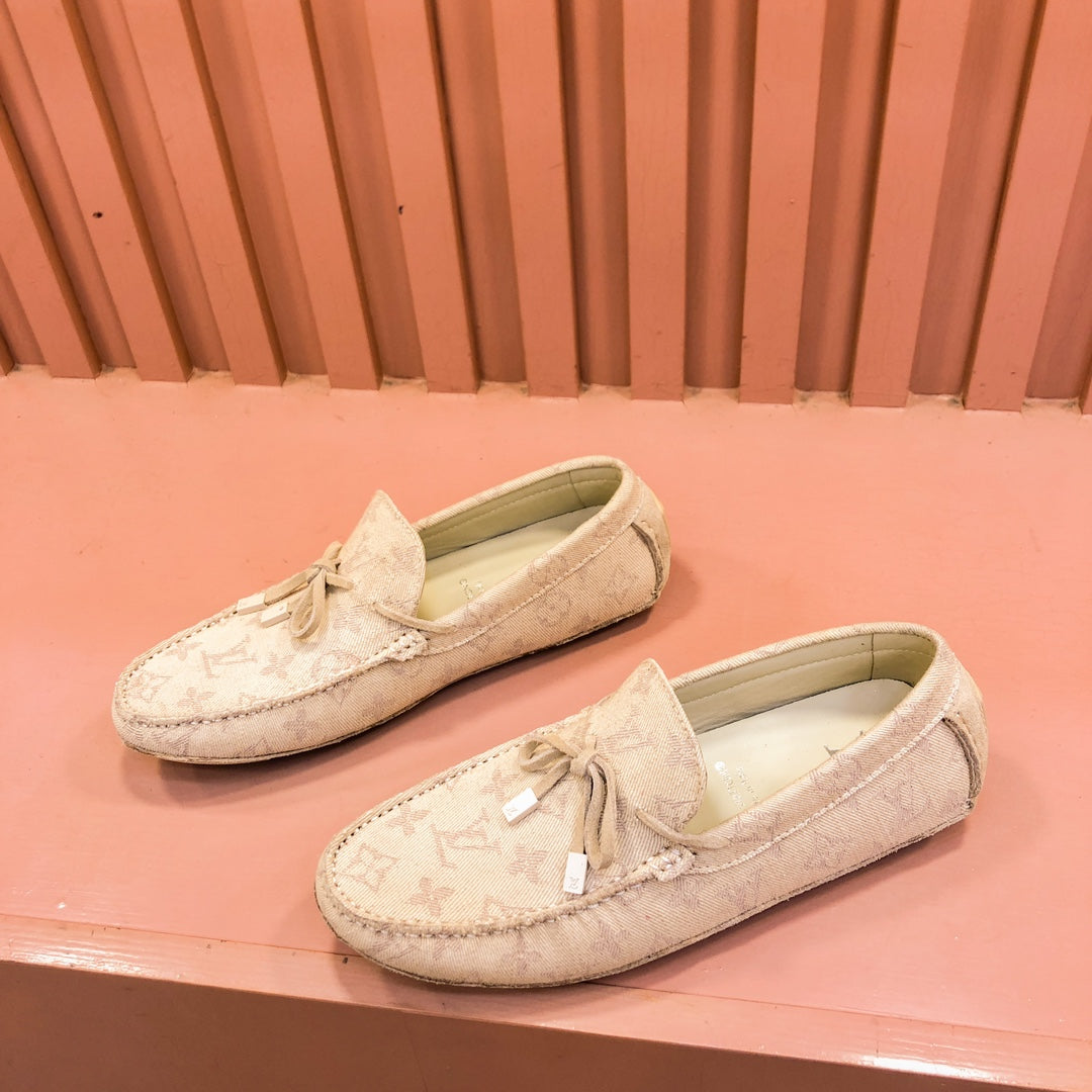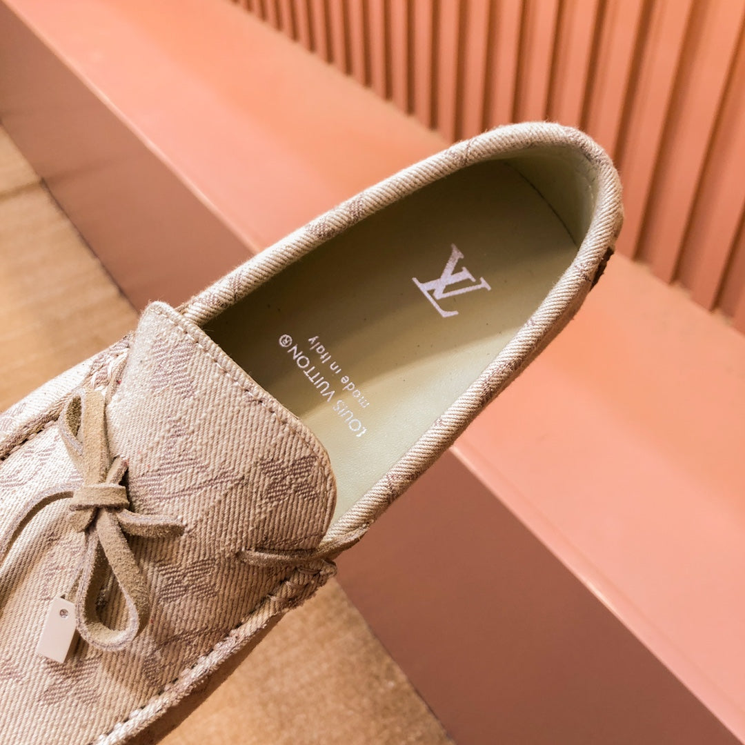LV LOAFER IN CAMEL BROWN MONOGRAM DENIM WITH BOW