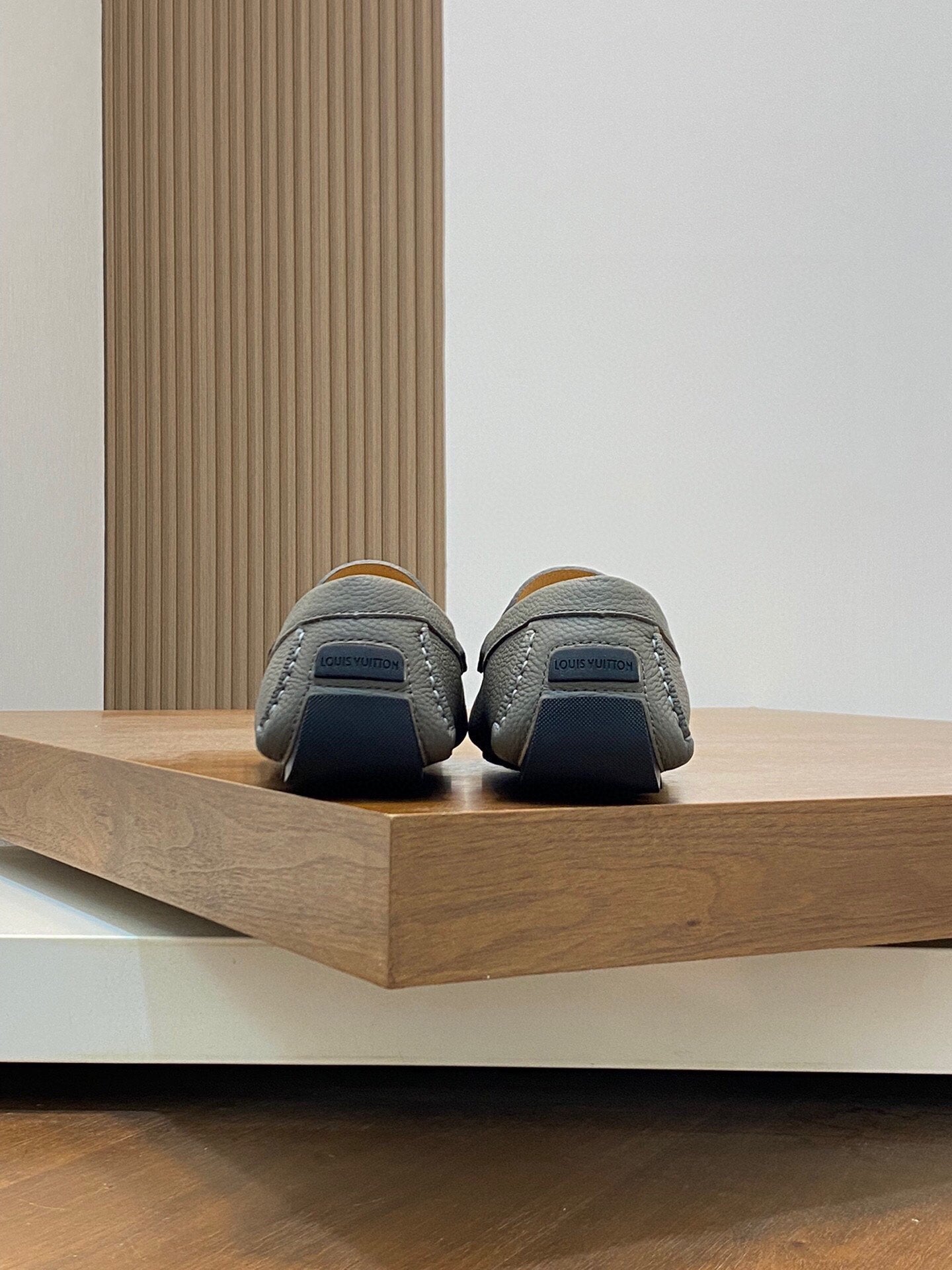 LV LOAFER IN SARDINE GREY WRINKLE CALFSKIN WITH SILVER LOGO