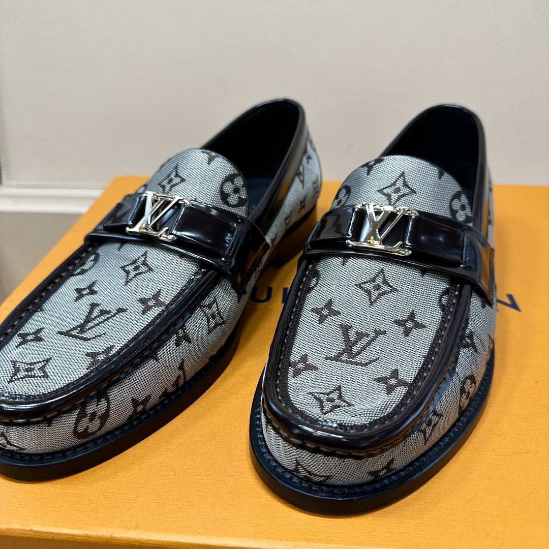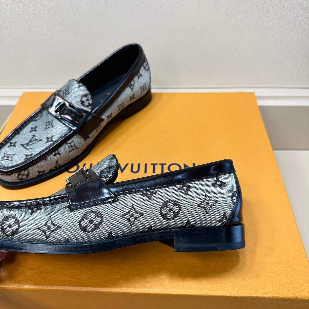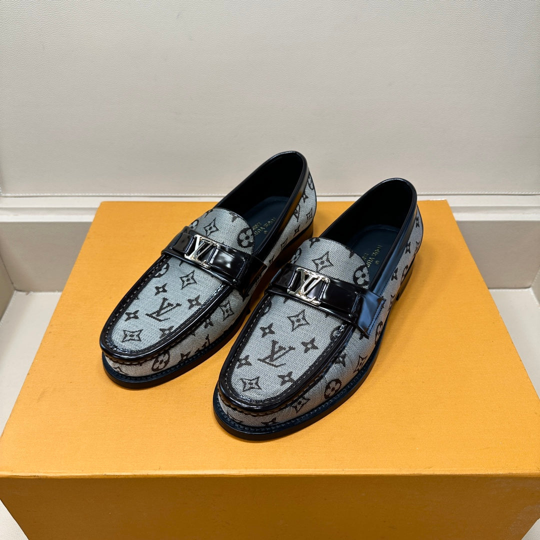 LV LOAFERS IN GREY MONOGRAM JACQUARD