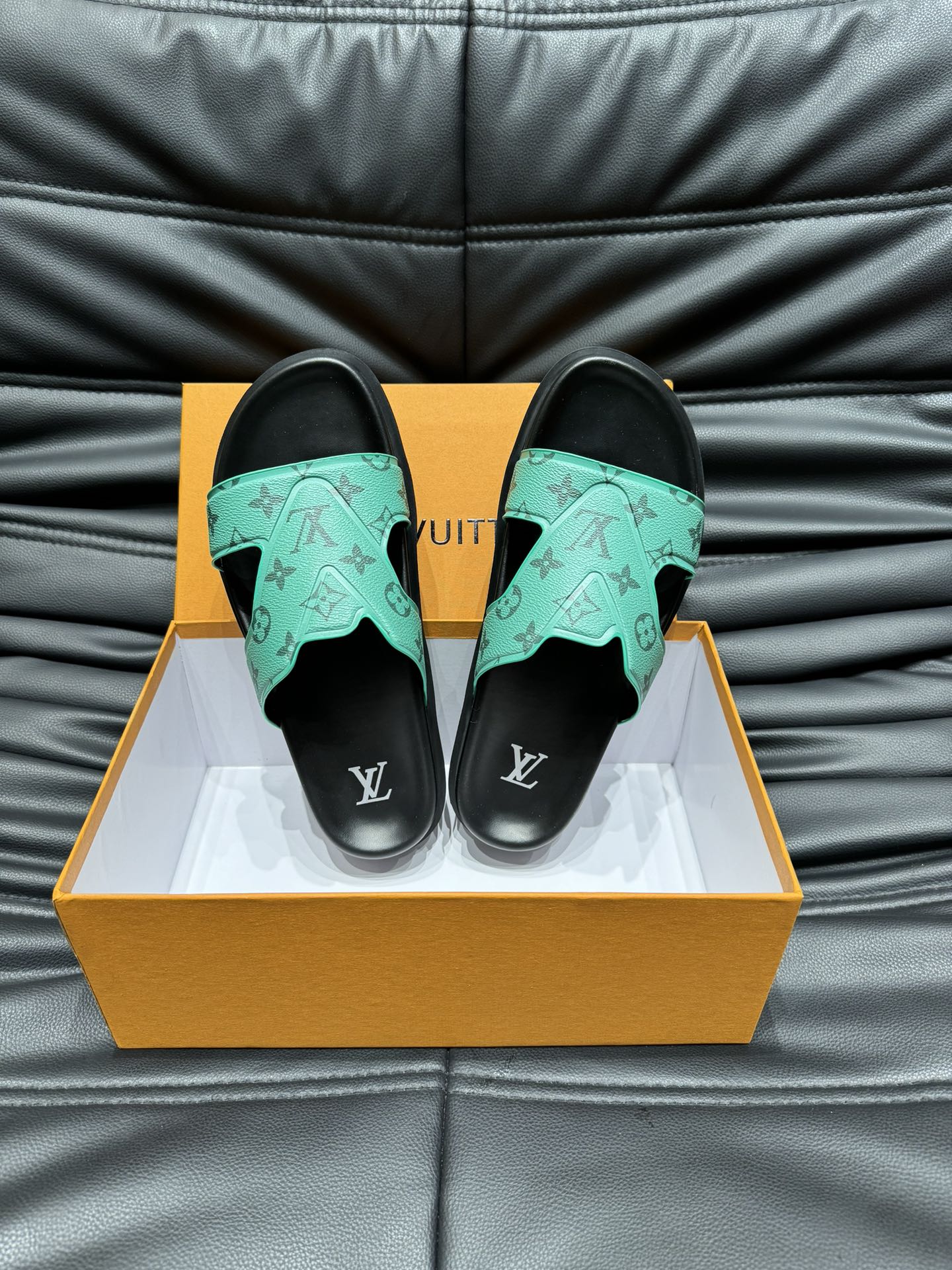 LV OASIS MULE IN SEA GREEN MONOGRAM CALFSKIN