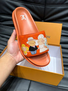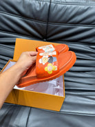 LV SLIPPERS IN CARROT ORANGE MONOGRAM CALFSKIN