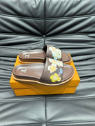 LV SLIPPERS IN CHOCOLATE BROWN MONOGRAM CALFSKIN