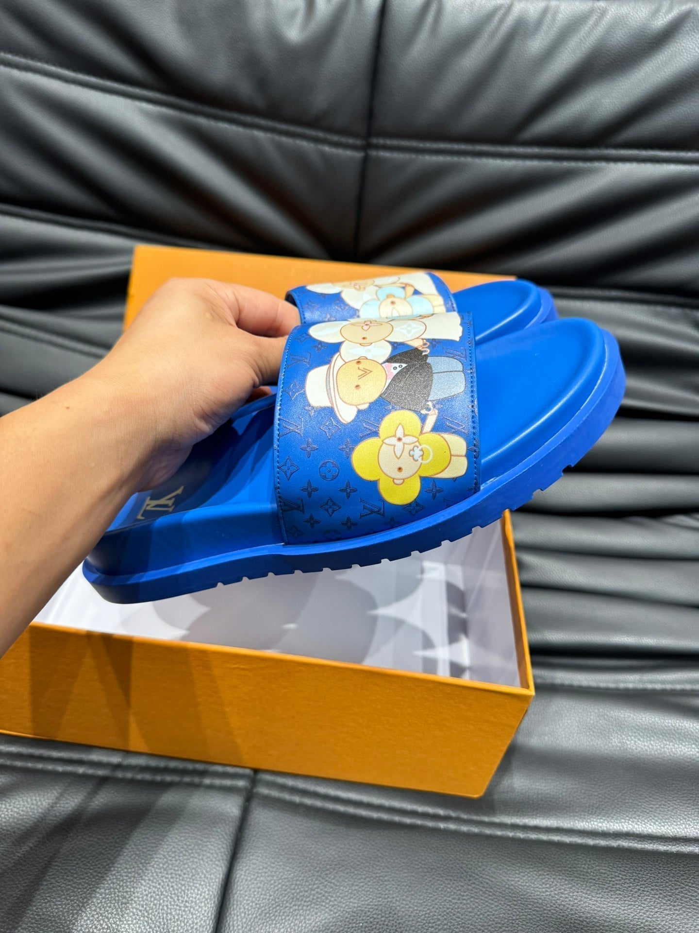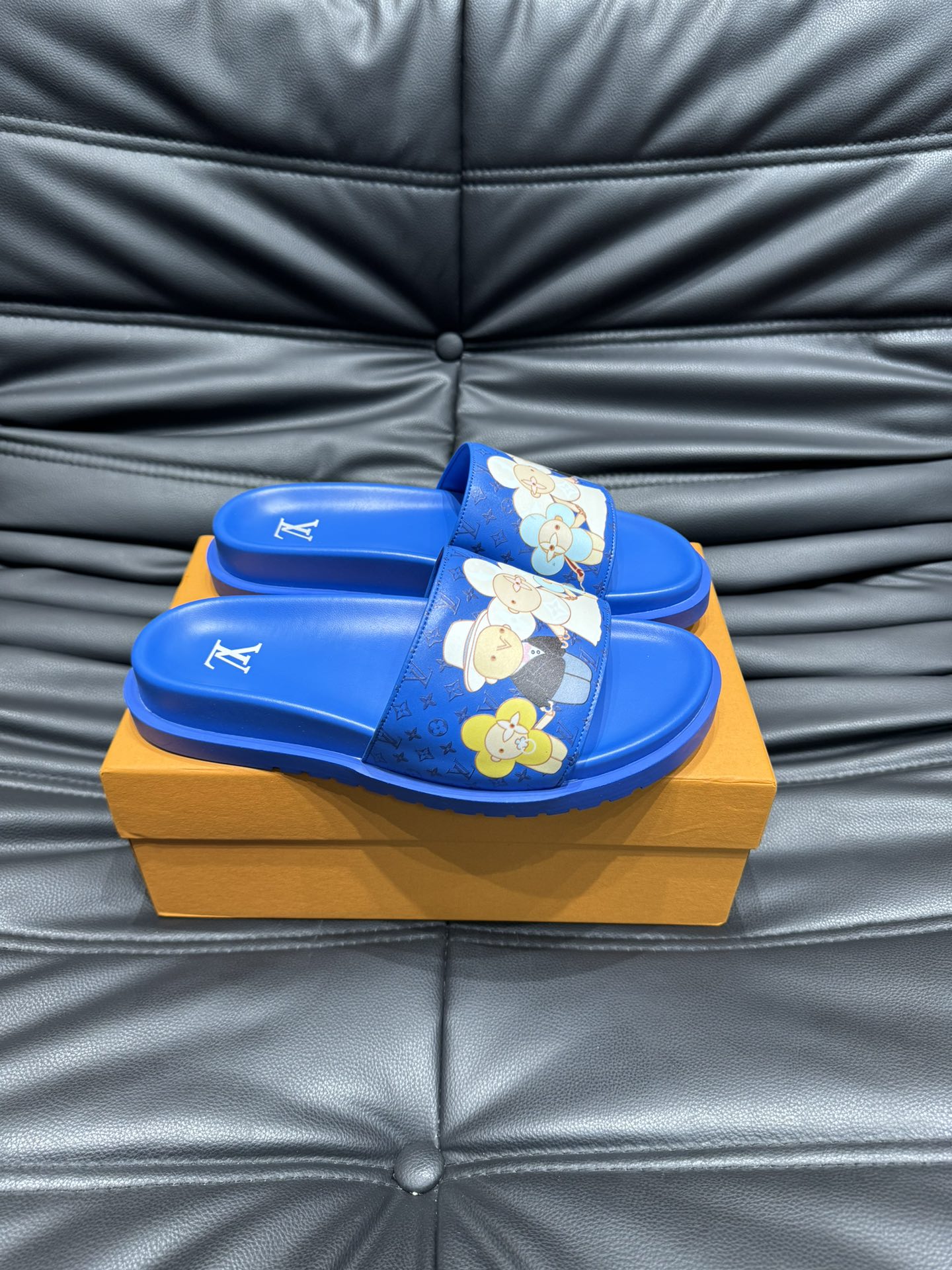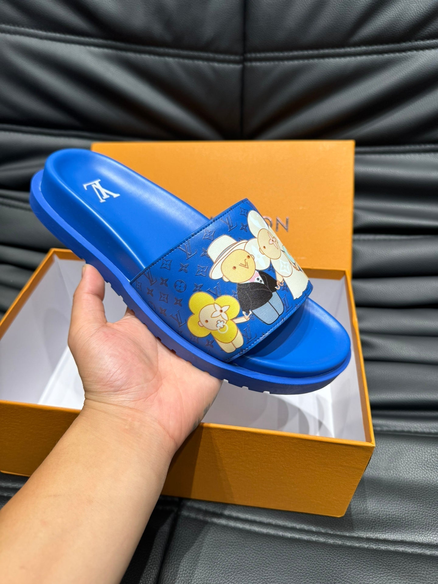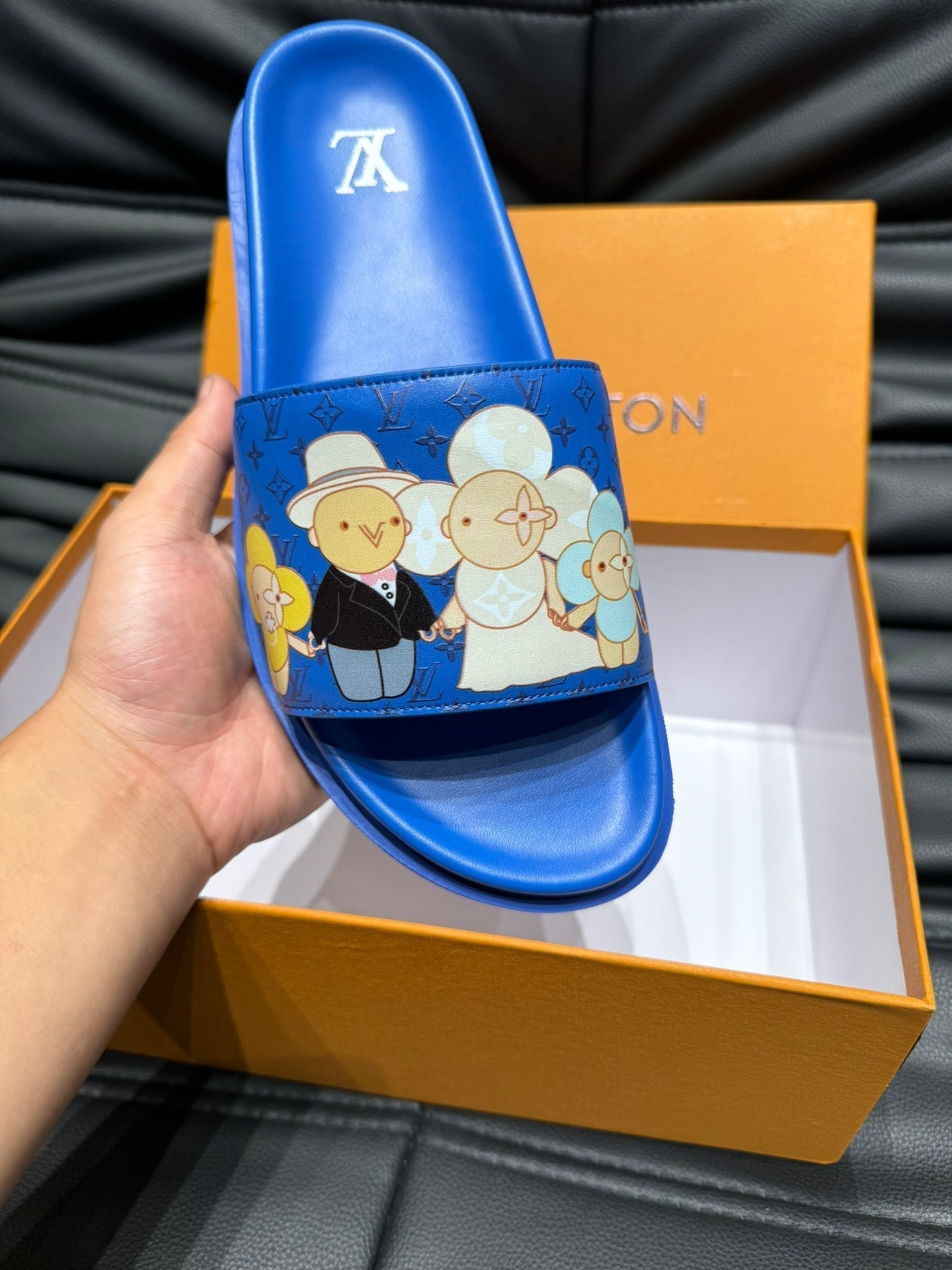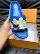 LV SLIPPERS IN COBALT BLUE MONOGRAM CALFSKIN