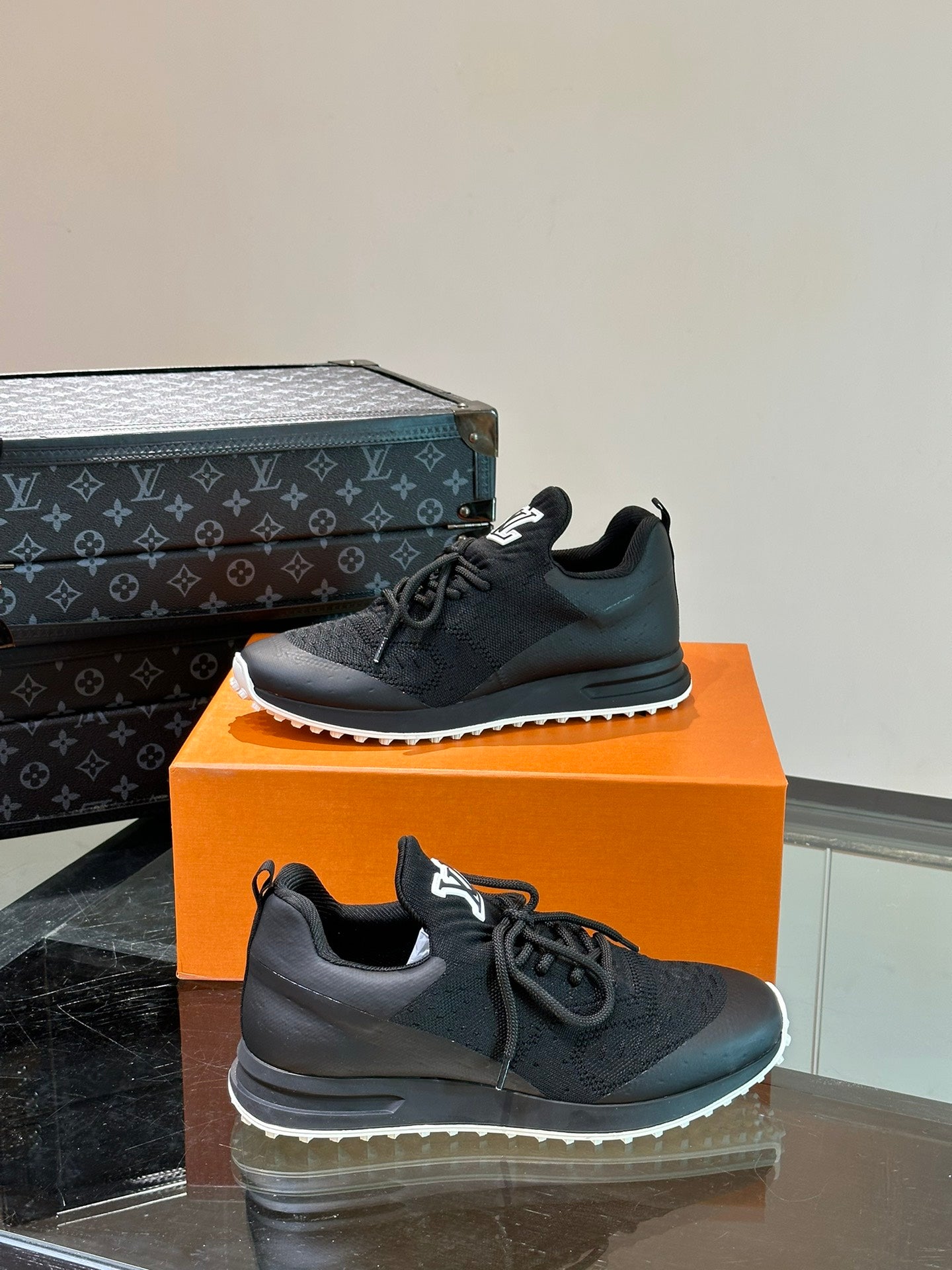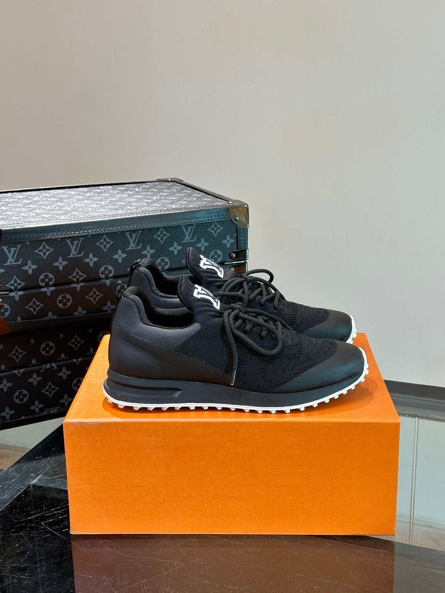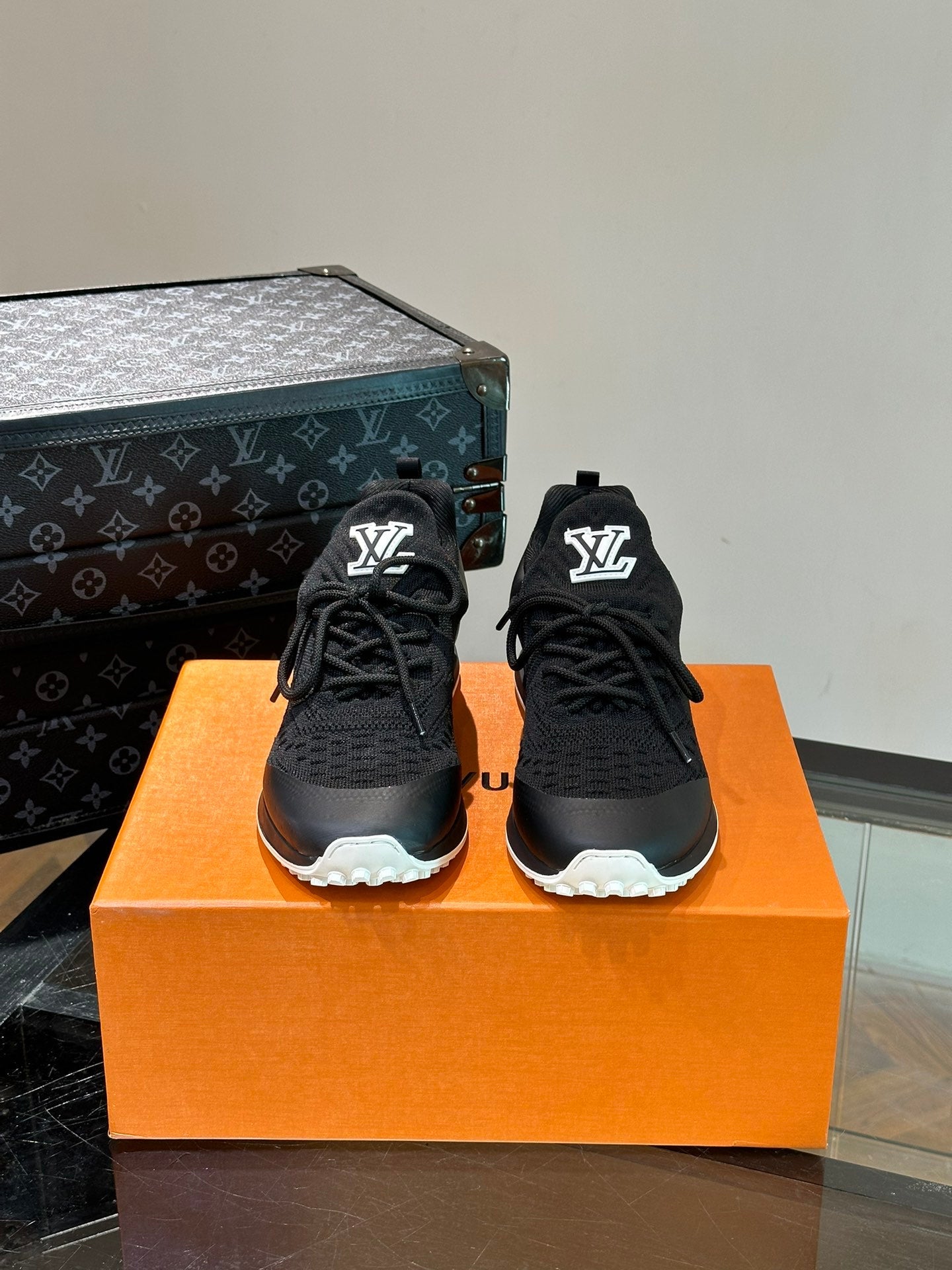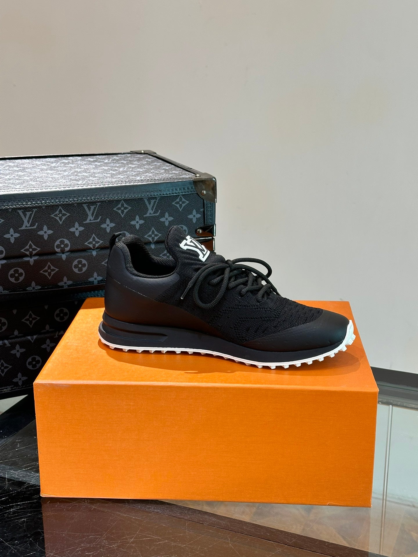 LV SNEAKERS IN BLACK CALFSKIN AND FABRIC BREATHABLE