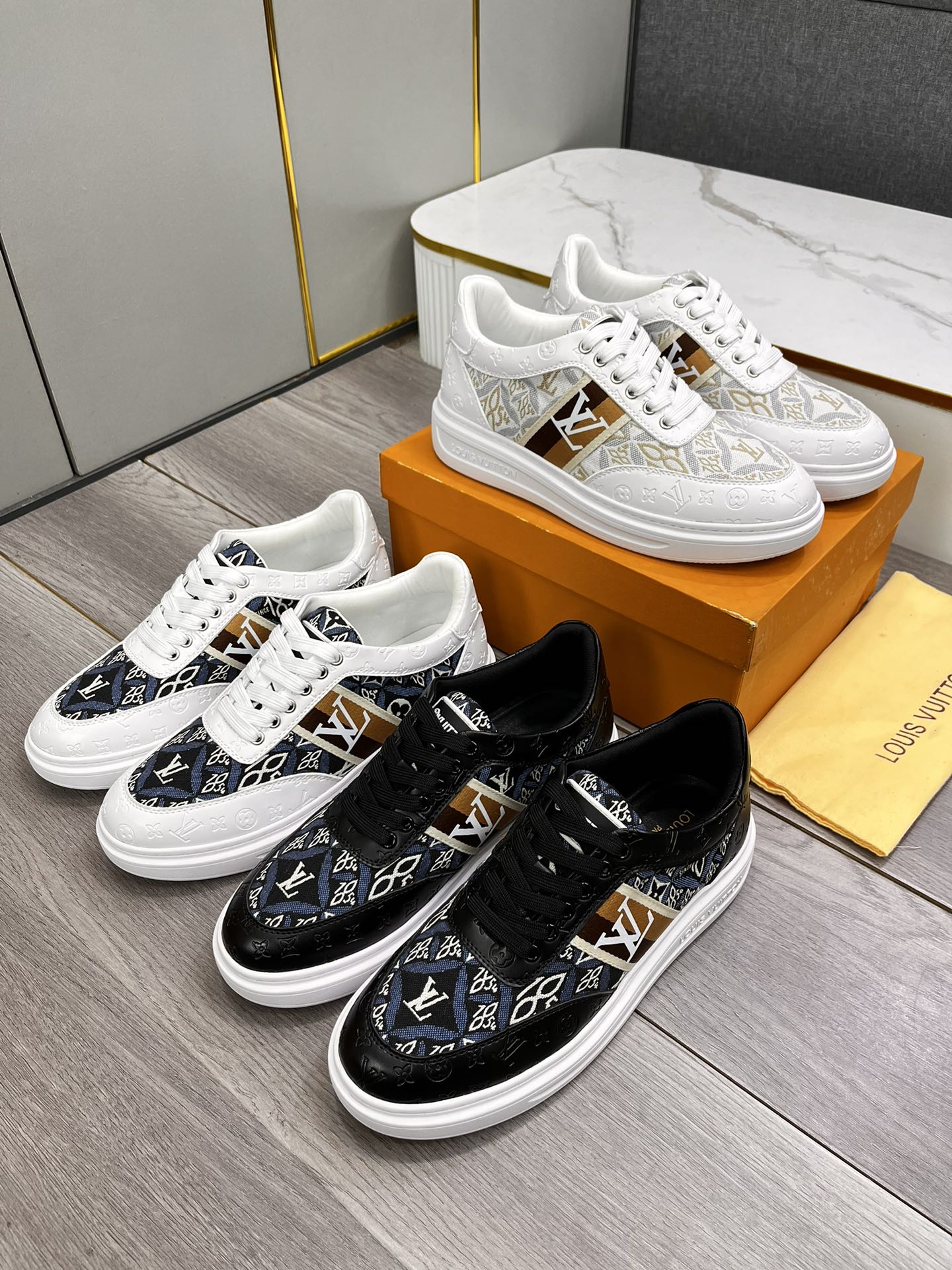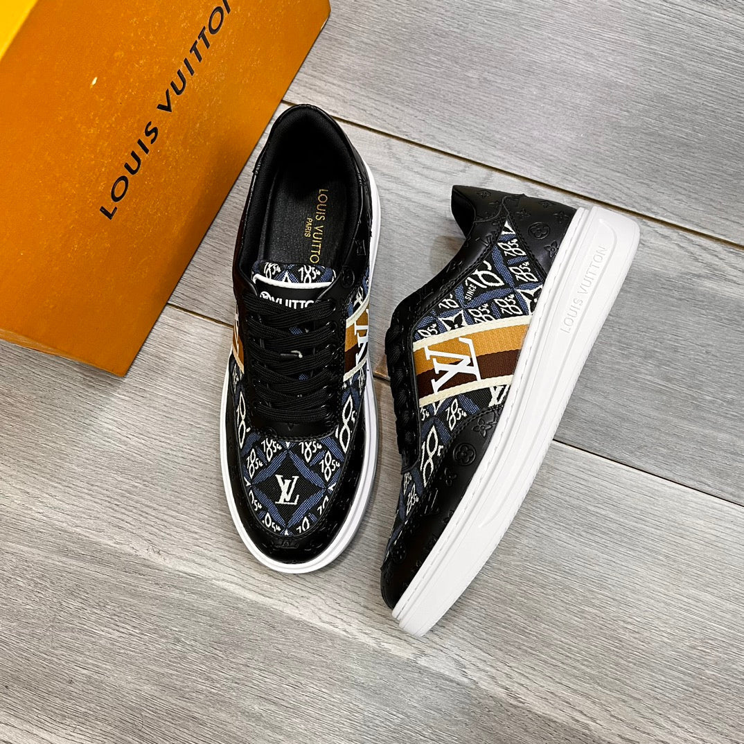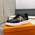 LV TRAINER IN BLACK EMBOSSED CALFSKIN AND MONOGRAM FABRIC