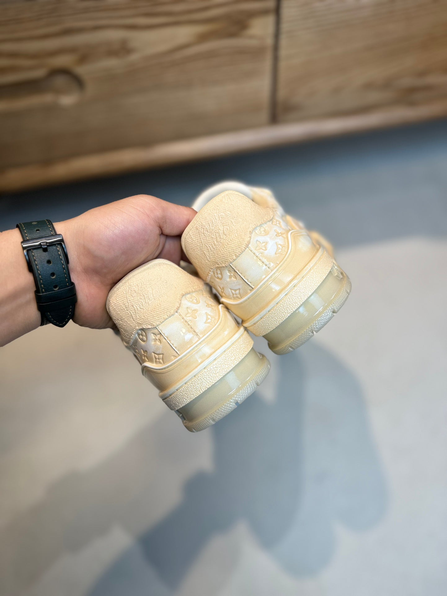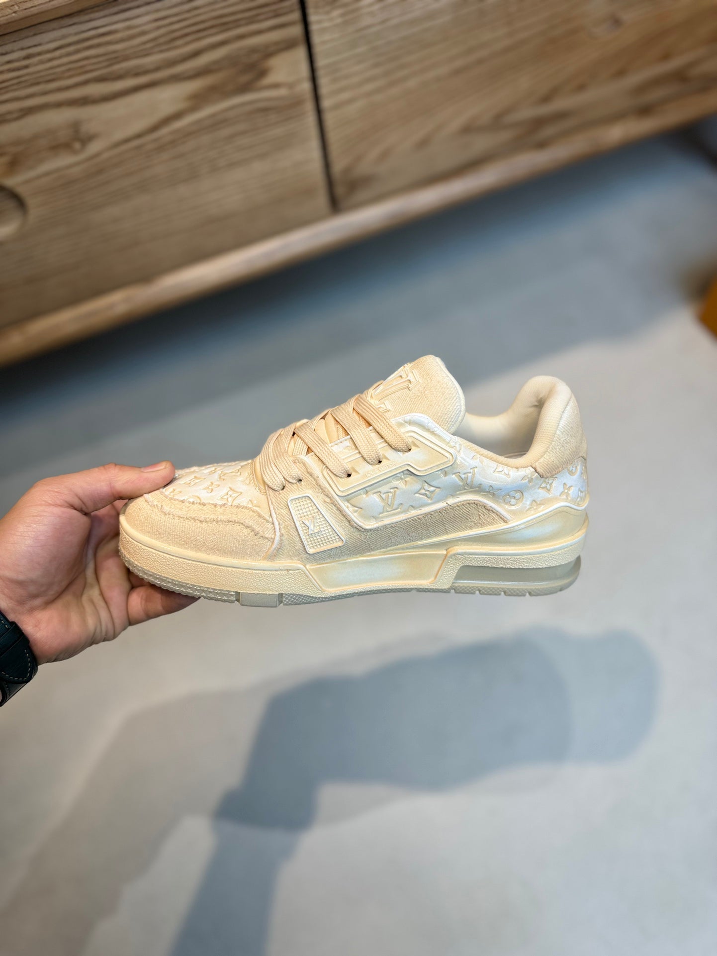 LV TRAINER MONOGRAM DENIM WHITE BEIGE SNEAKE