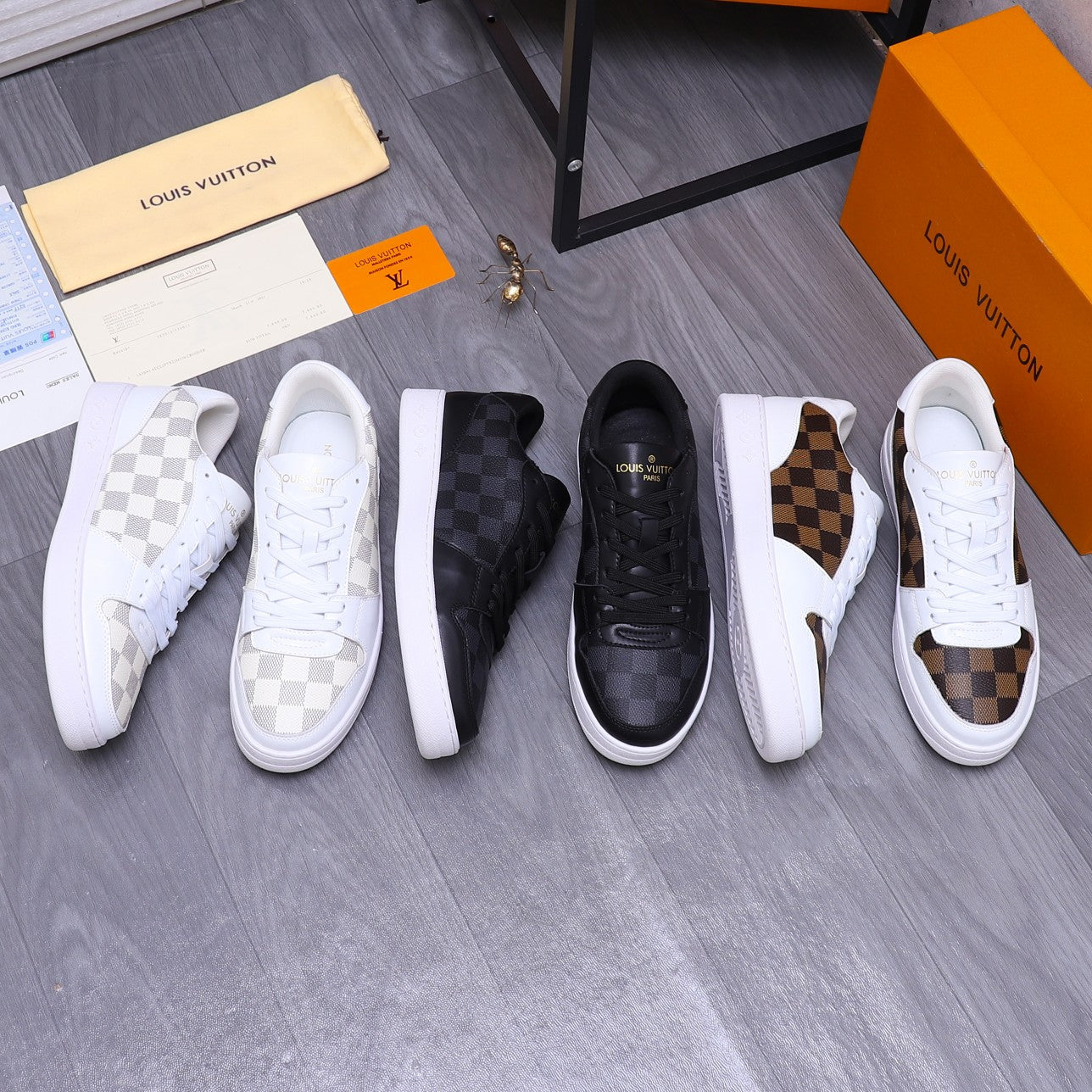 LV TRAINER SHOES IN WHITE MIX BROWN DAMIER CALFSKIN