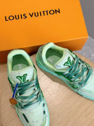 LV TRAINER SNEAKER LIGHT GREEN MONOGRAM DENIM AND CALFSKIN