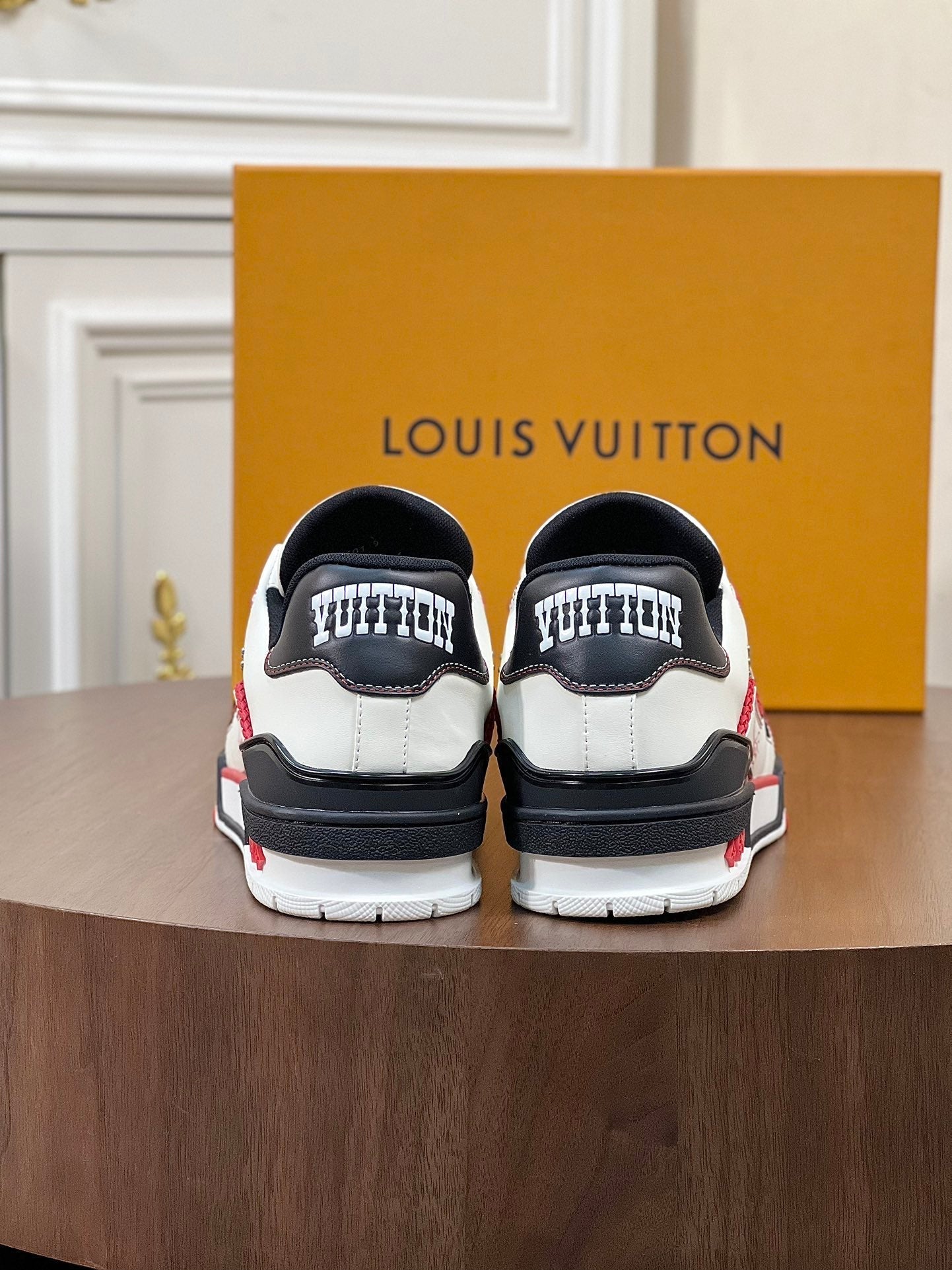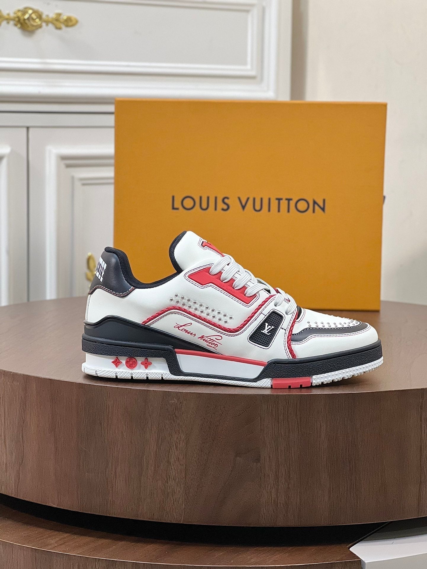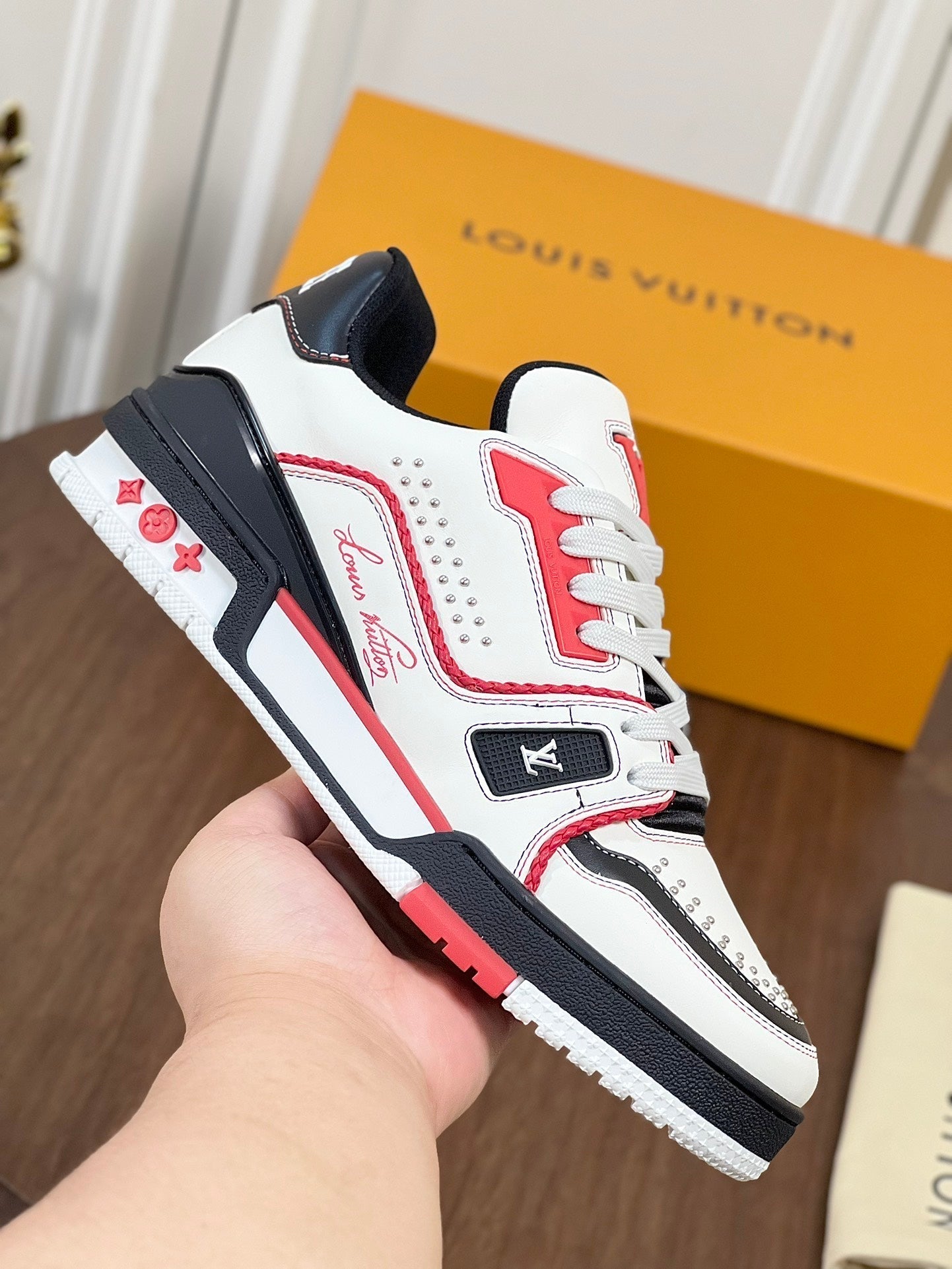 LV TRAINER WHITE MIX BLACK AND RED MONOGRAM CALFSKIN