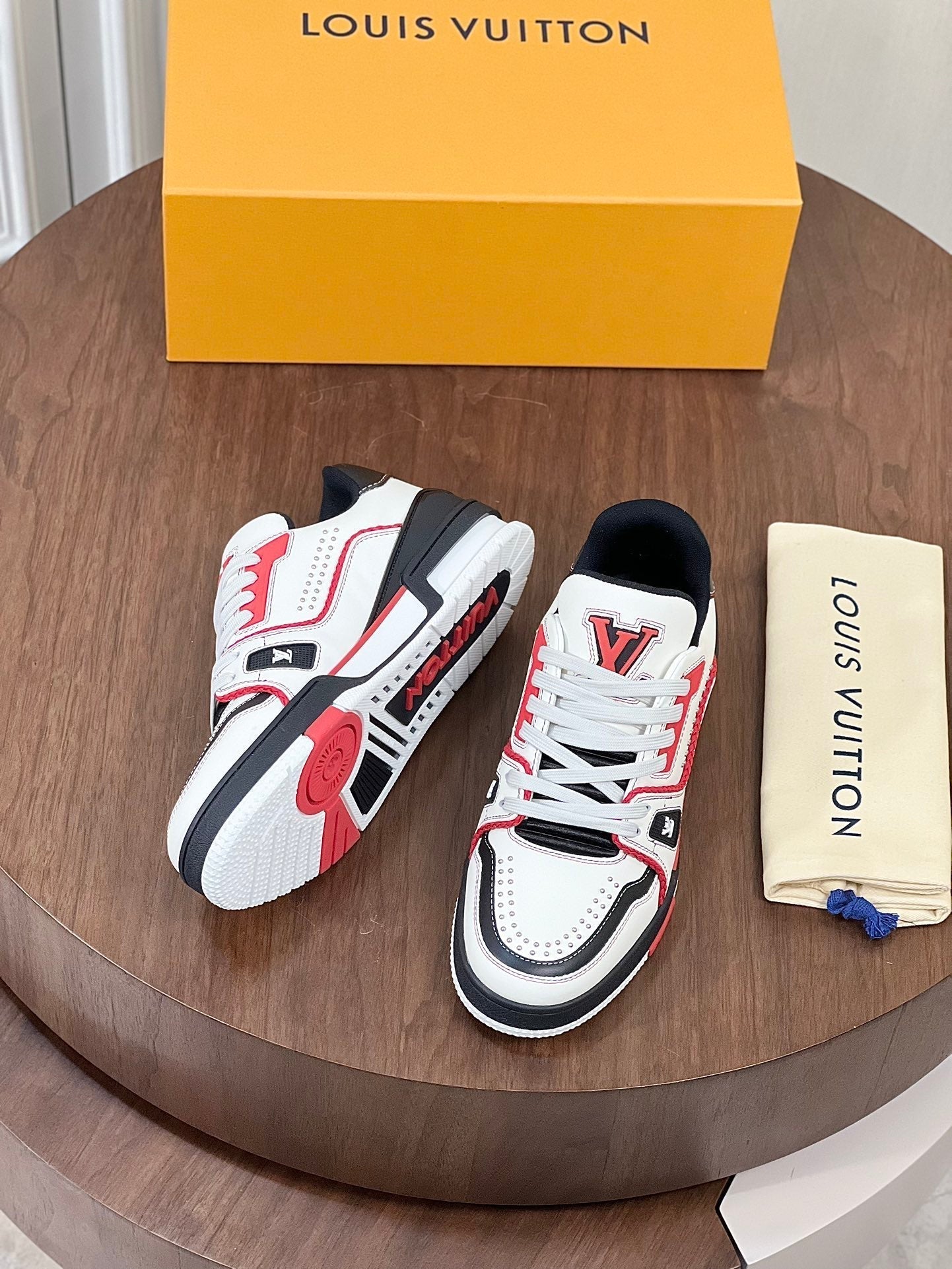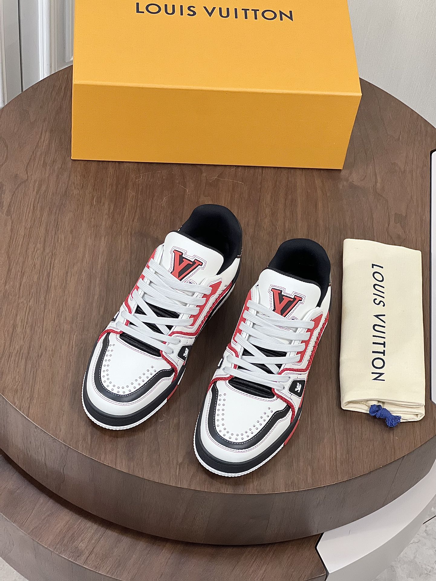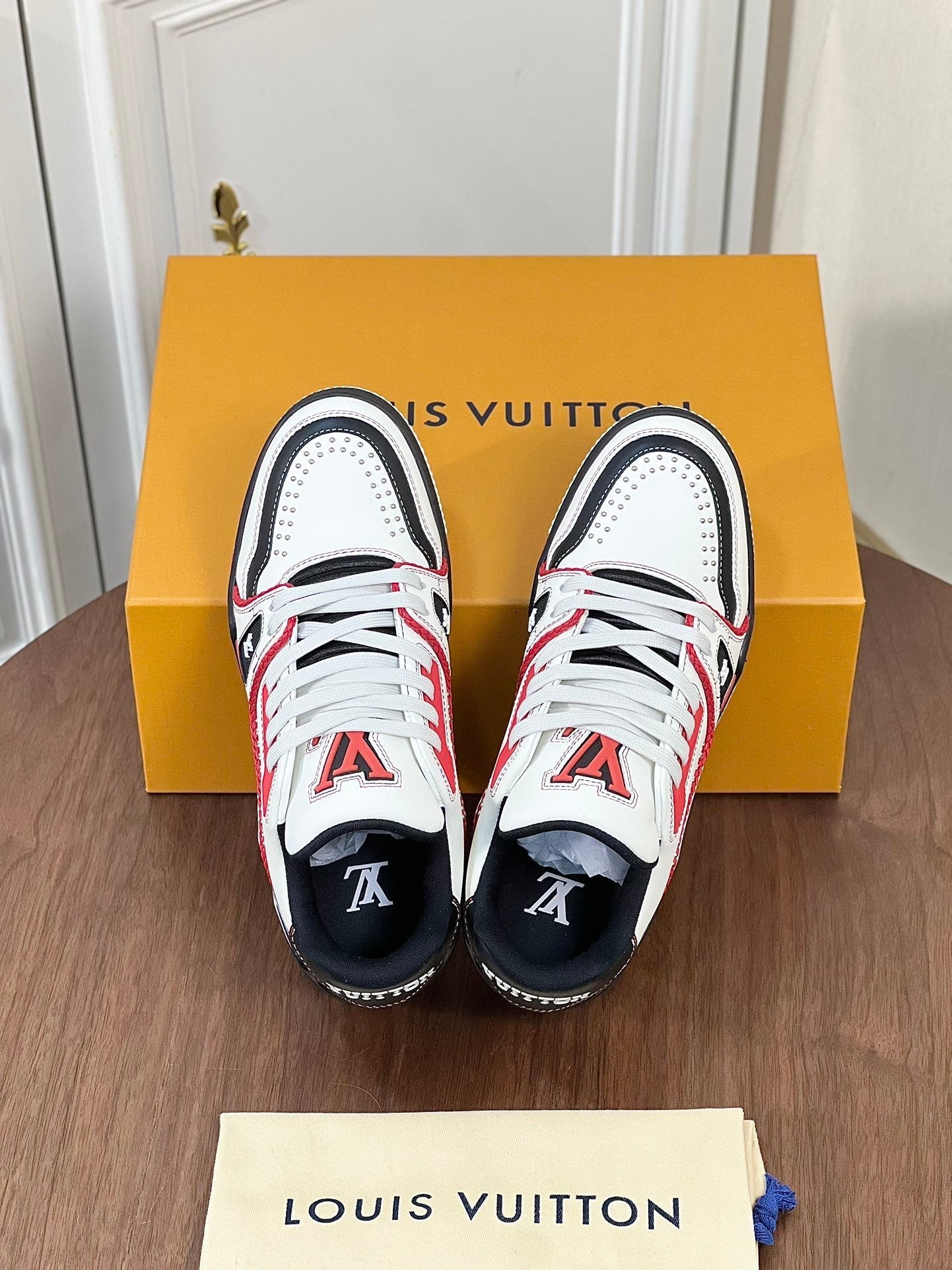LV TRAINER WHITE MIX BLACK AND RED MONOGRAM CALFSKIN
