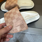 LV VELCRO SLIPPERS DESERT SAND DAMIER MONOGRAM CALFSKIN