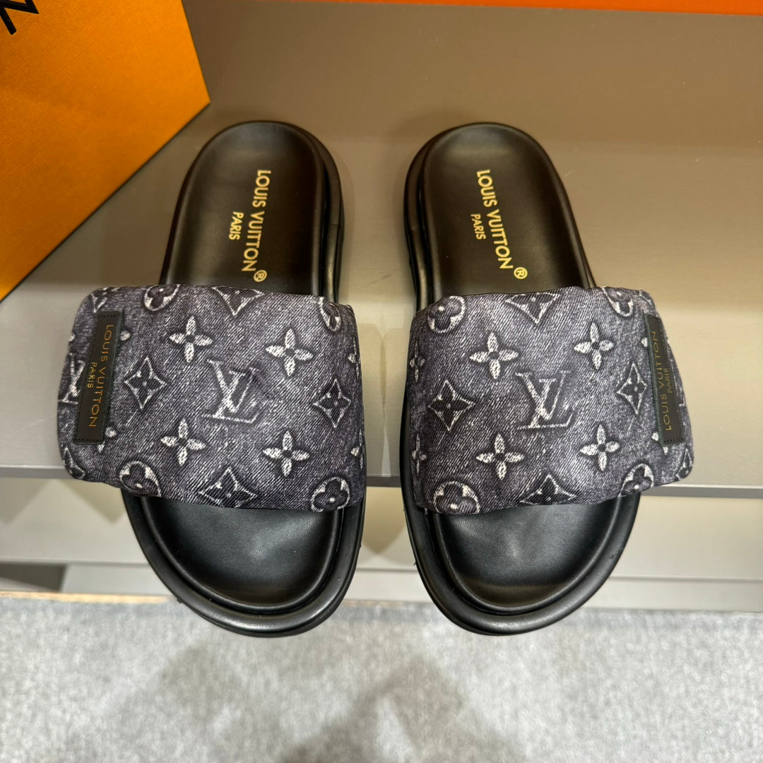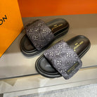 LV VELCRO SLIPPERS IN ASH GREY MONOGRAM JACQUARD