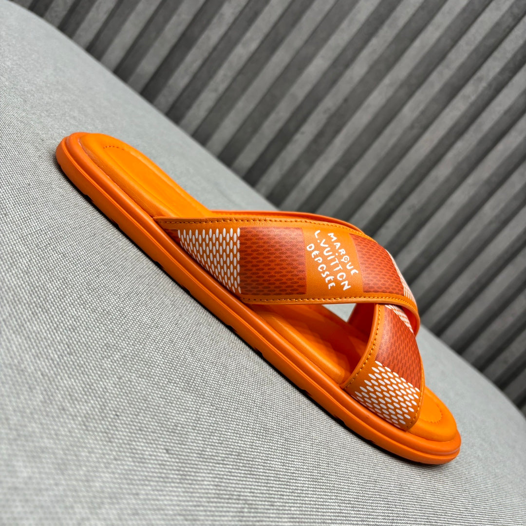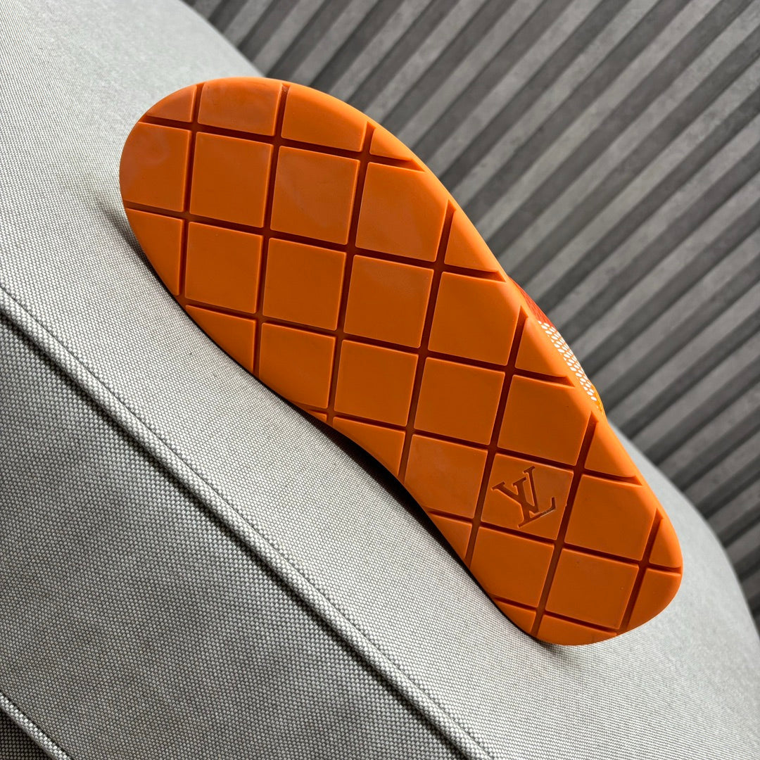 • Premium LV men's slippers, synchronizing with the 2024 early autumn runway collection. The slippers feature a high-quality fabric upper and an original, exclusive comfort sole, ensuring exceptional comfort. These are original factory-followed products.