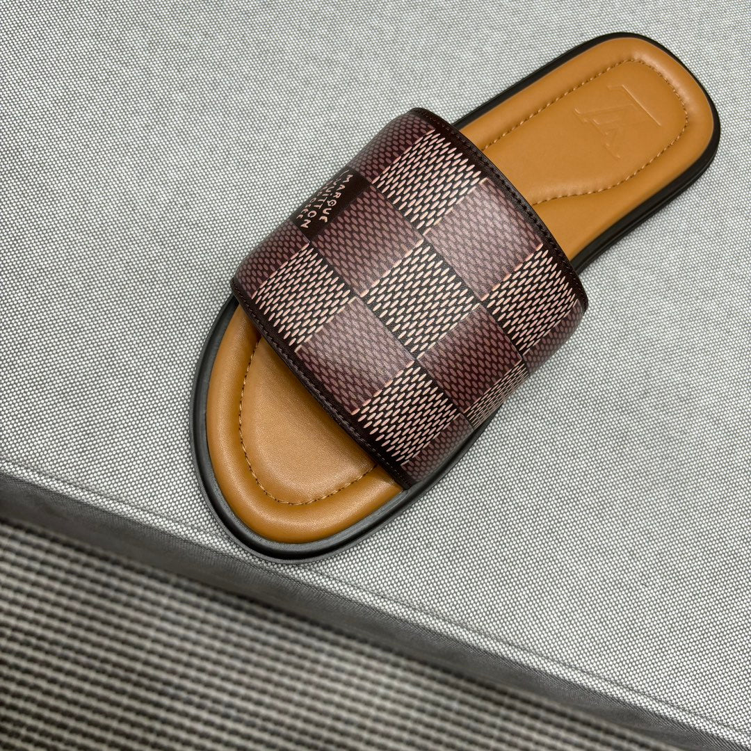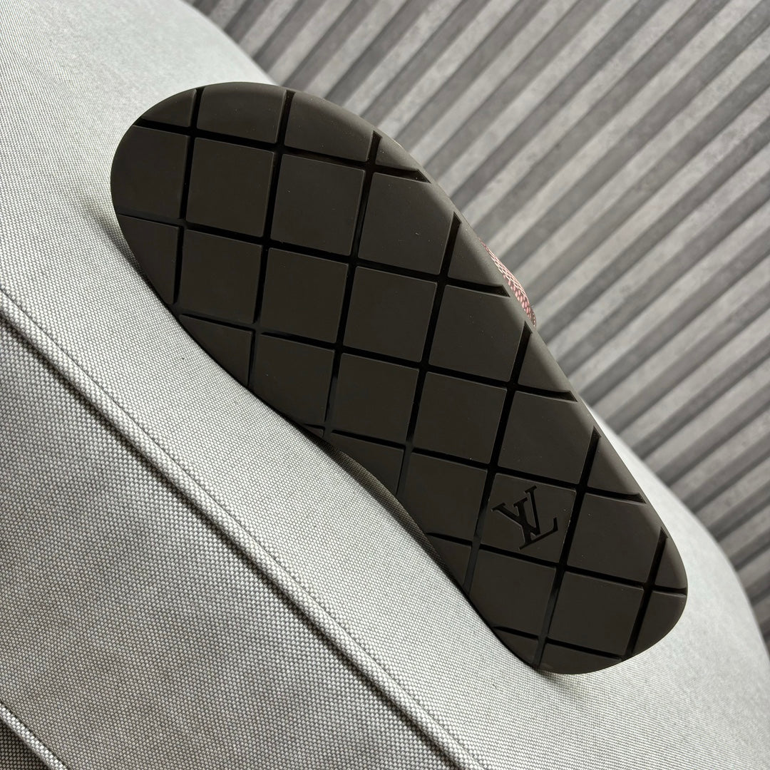 • Premium LV men's slippers, synchronizing with the 2024 early autumn runway collection. The slippers feature a high-quality fabric upper and an original, exclusive comfort sole, ensuring exceptional comfort. These are original factory-followed products.