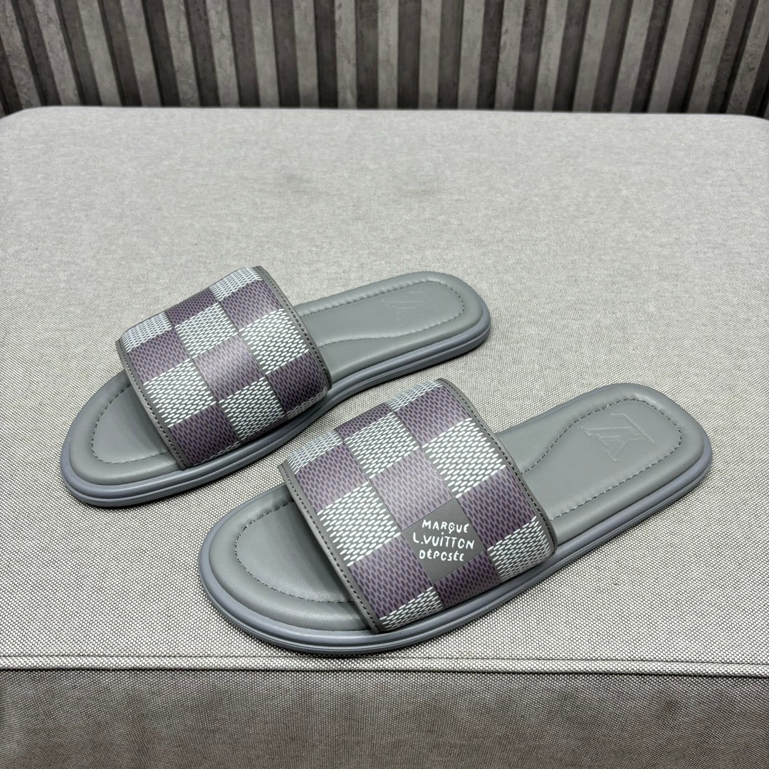 • Premium LV men's slippers, synchronizing with the 2024 early autumn runway collection. The slippers feature a high-quality fabric upper and an original, exclusive comfort sole, ensuring exceptional comfort. These are original factory-followed products.