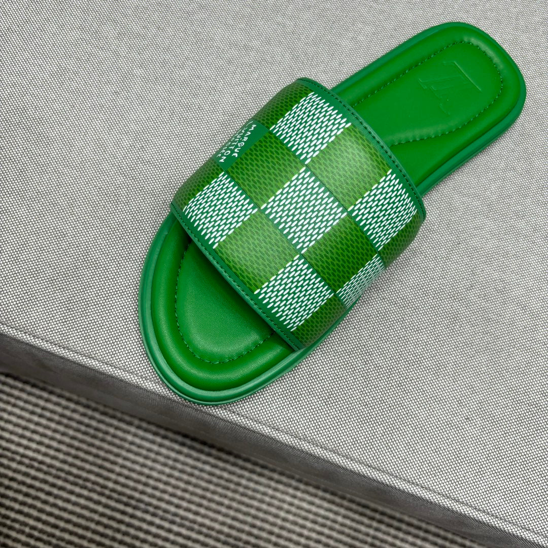 LV VENICE MULE SLIPPERS KELLY GREEN DAMIER