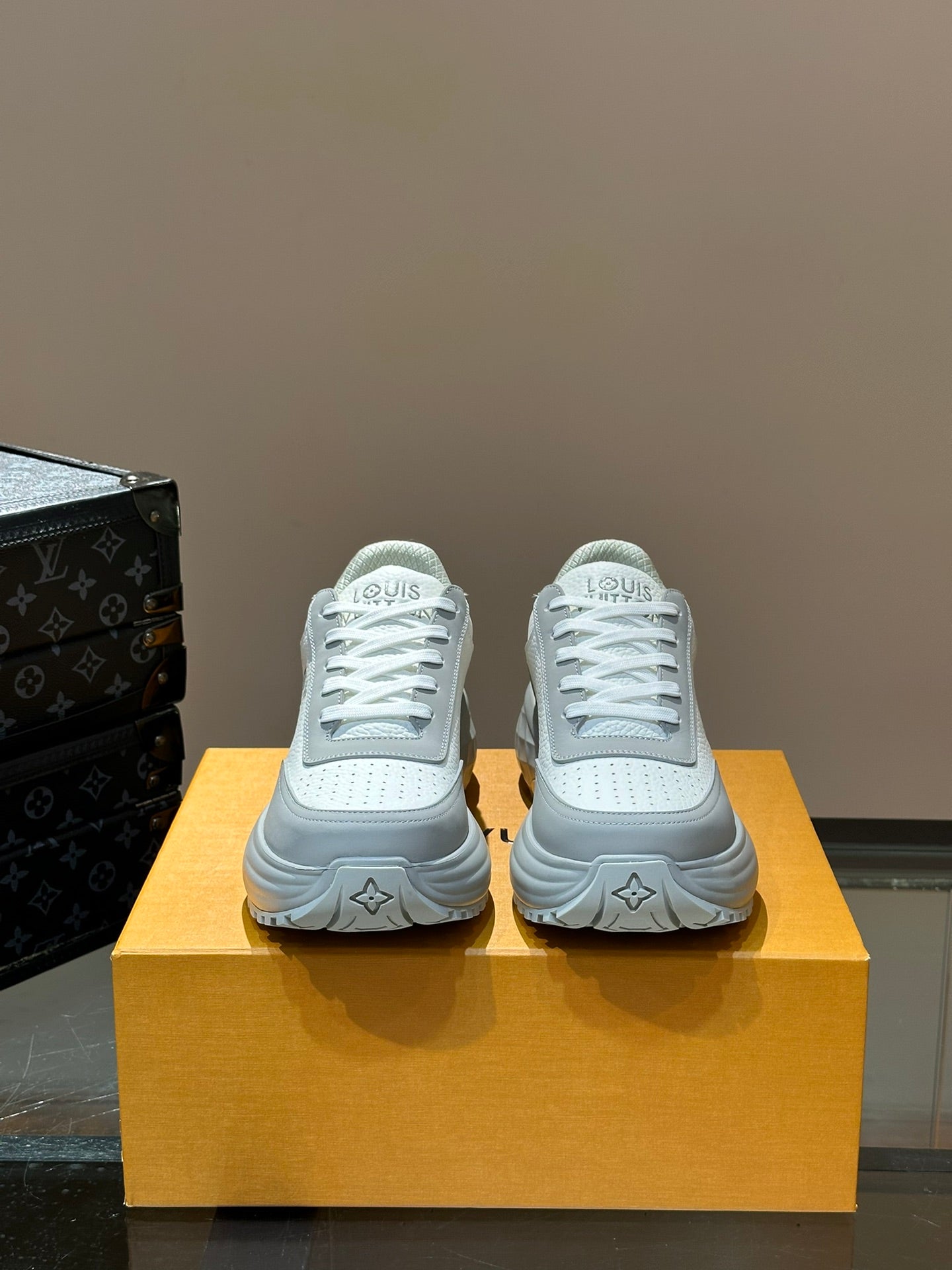 THICK-SOLED SNEAKER GREY AND WHITE CALFSKIN
