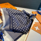 MONOGRAM SHINE SCARF 120 CM IN NAVY BLUE WOOL AND MULBERRY SILK 398196