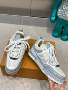 LV Skate Sneaker Gray Mix White Beige Cowhide