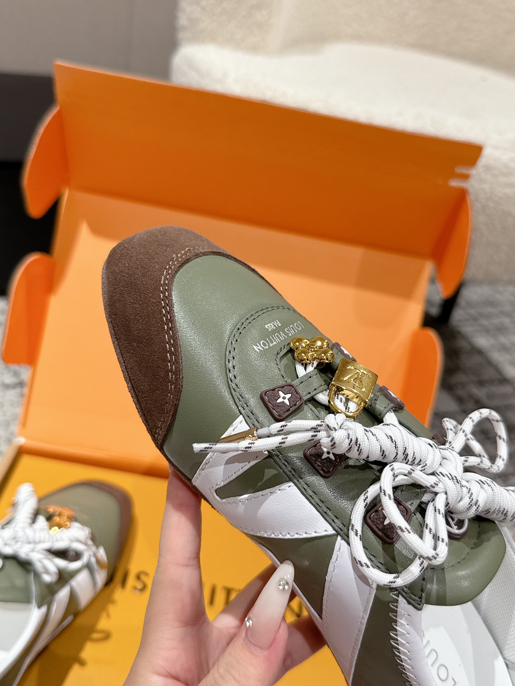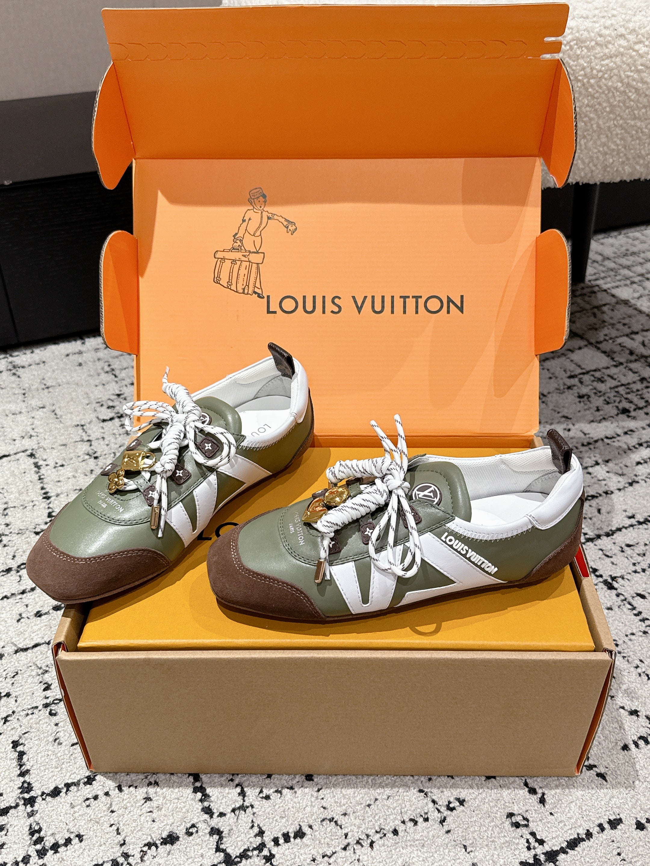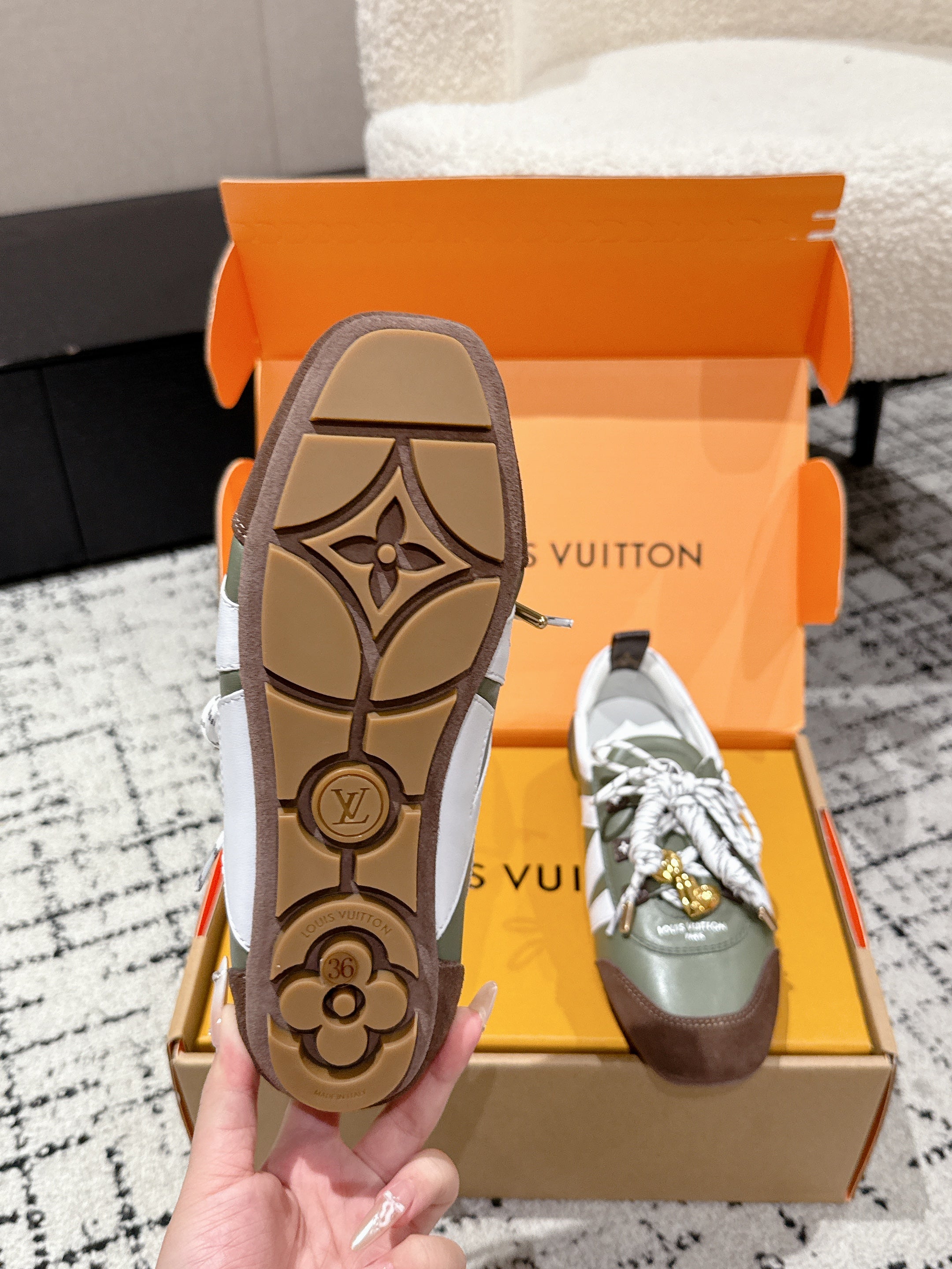 LV Sneakerina ballet-style sneaker green brown cowhide 383383