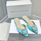 Manolo Buckle Flast Mules Electric Silk 327511