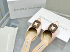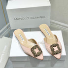 Manolo Buckle Flast Mules Light Pink Silk 327514