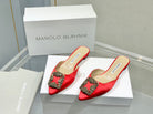 Manolo Buckle Flast Mules Red Silk 327518